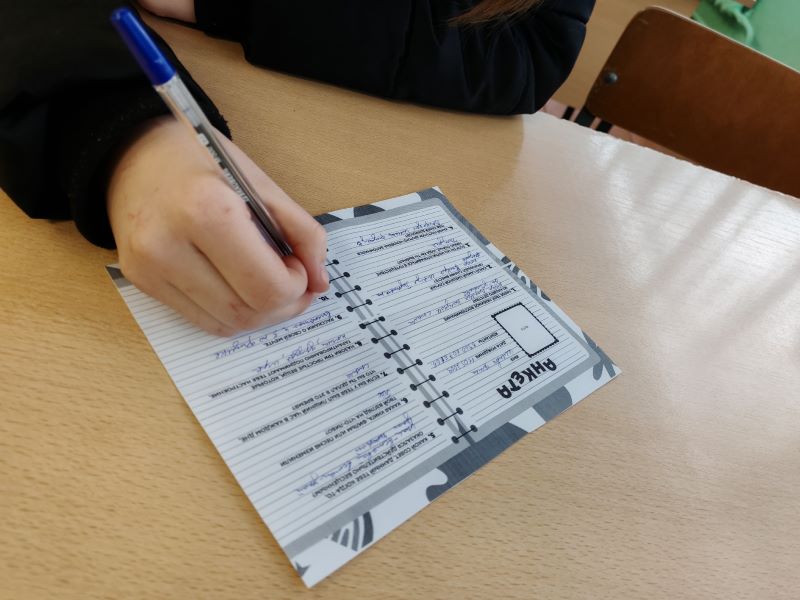 Советник по воспитанию Е.В. Финогенова предложила ребятам совершить небольшое путешествие во времени, вспомнить 90-е и создать ту самую легендарную «Анкету друзей». Наверное, почти у каждого в те годы была заветная тетрадь, которую доверяли только самым близким, берегли от посторонних глаз и заполняли с особым трепетом. Ведь там — целая вселенная тайн, мечтаний и секретов!