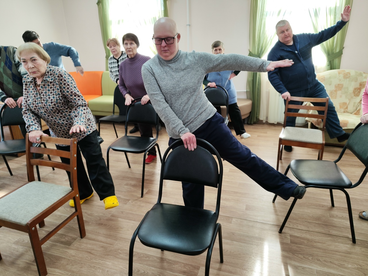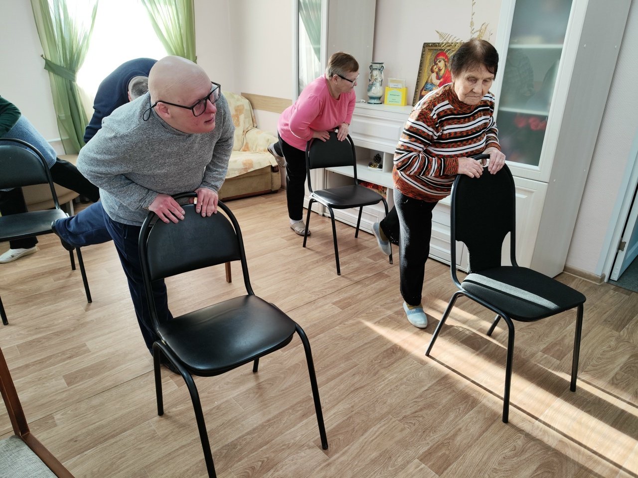 С удовольствием получатели социальных услуг полустационарного социально-реабилитационного отделения приняли участие в групповом занятии для улучшения равновесия и координации движений как меры профилактики падений у лиц пожилого возраста и инвалидов.