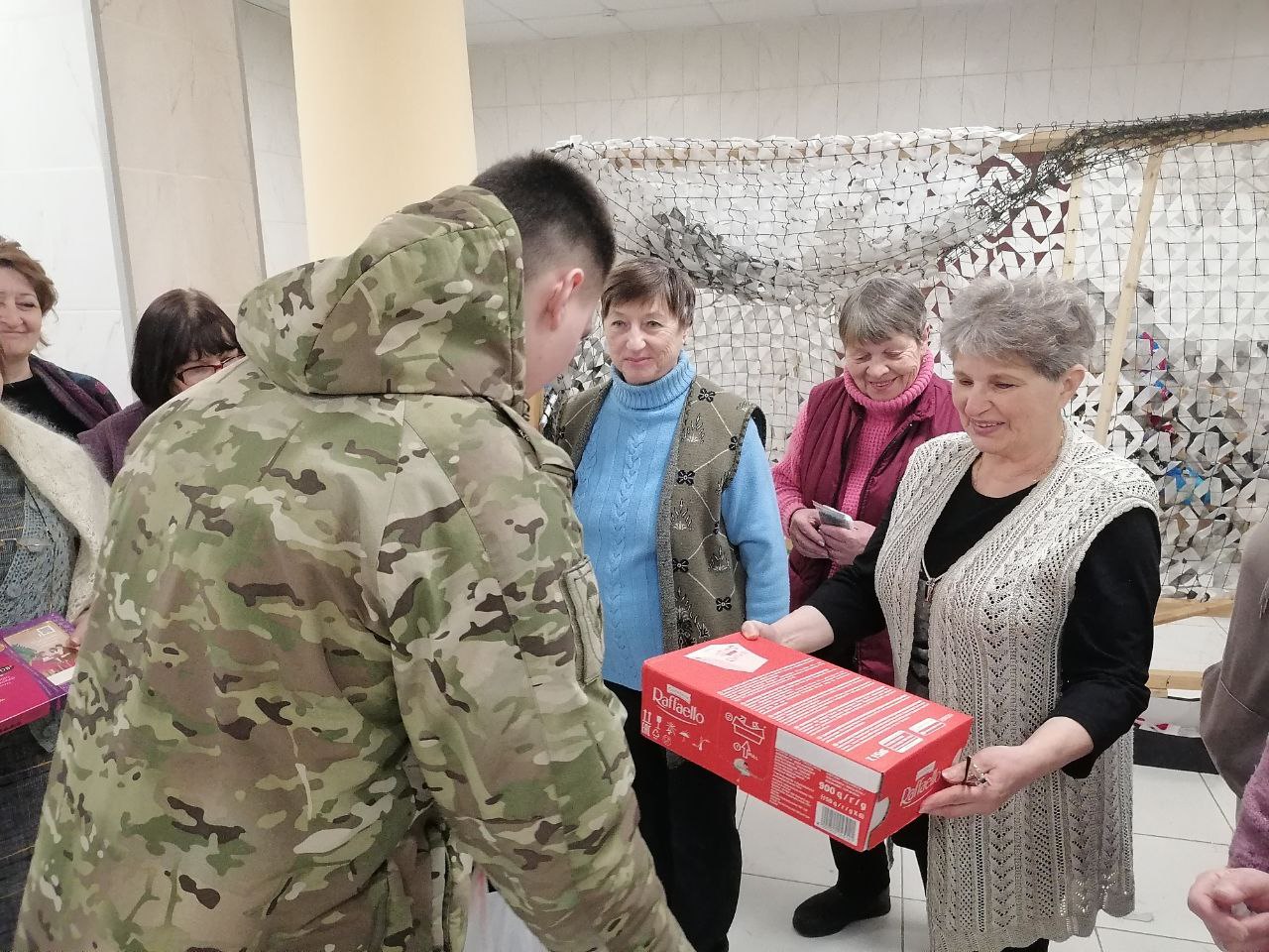 А женщины наперебой задавали ему вопросы о службе, о родных, о бытовых условиях, благодарили и обнимали его, как своего защитника. Они подарили земляку несколько изделий, которые ему и его товарищам пригодятся на службе и очень просили беречь себя.