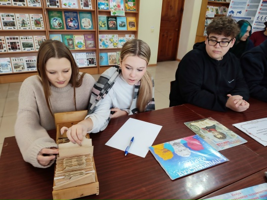 С целью продвижения книги и чтения сотрудники детской библиотеки провели для учащихся 8 класса средней школы №1, владельцев «Пушкинской карты», интеллектуальный квиз.