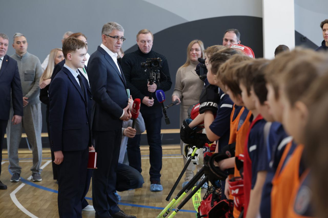 Губернатор и Семен Занин посетили Центр образования №21. Школа построена в рамках национального проекта «Образование», в ней учится 600 ребят. Летом 2025 года школа заняла второе место в номинации «Лучшая школа от застройщика». В прошлом году она открыла двери для первых учащихся. В школе углублено изучаются предметы по технологическому профилю: математика и информатика. В начальной школе создано 4 хоккейных класса в партнерстве с хоккейным клубом «Академия Михайлова». Глава региона и Семен осмотрели пищеблок, спортивный зал, библиотечно-информационный центр и актовый зал, пообщались с учениками. Дмитрий Миляев пригласил учителя физкультуры-участника регионального проекта ПРОстажер на Всероссийский форум учителей физкультуры, который пройдет в Тульской области в апреле. А в актовом зале Губернатор и Семен стали зрителями репетиции школьного театра. Ребята готовят к показу постановку по произведению Константина Симонова «Сын артиллериста».