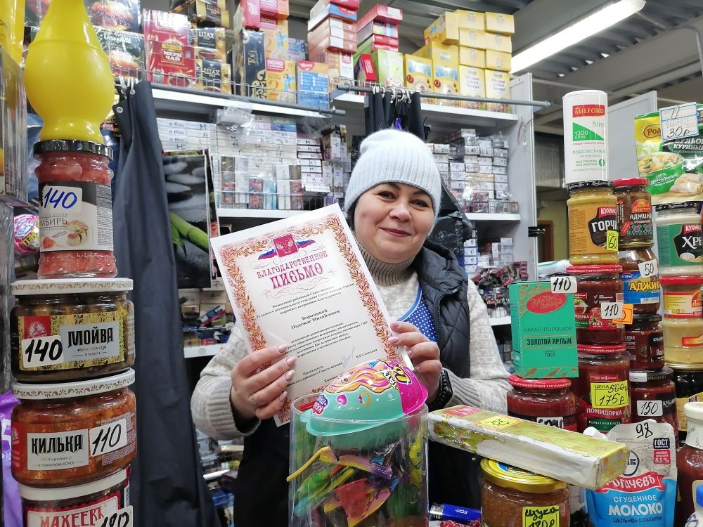 Покупатели, стоявшие в очереди на кимовском рынке у прилавка Надежды Ворониной, согласились подождать, когда узнали, с какой целью подошли представители женсовета. Вместе с ними покупатели выразили свое доброе отношение к Надежде Михайловне, которая постоянно предоставляет скидки и отдает дополнительный товар для посылок, собираемых нашим воинам.
