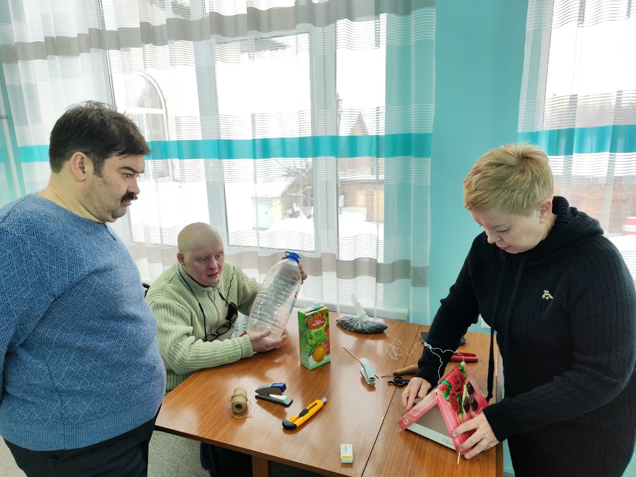Специалист по социально-реабилитационной работе показала, как из подручного материала смастерить зимнюю кормушку своими руками и рассказала, чем её заполнить.