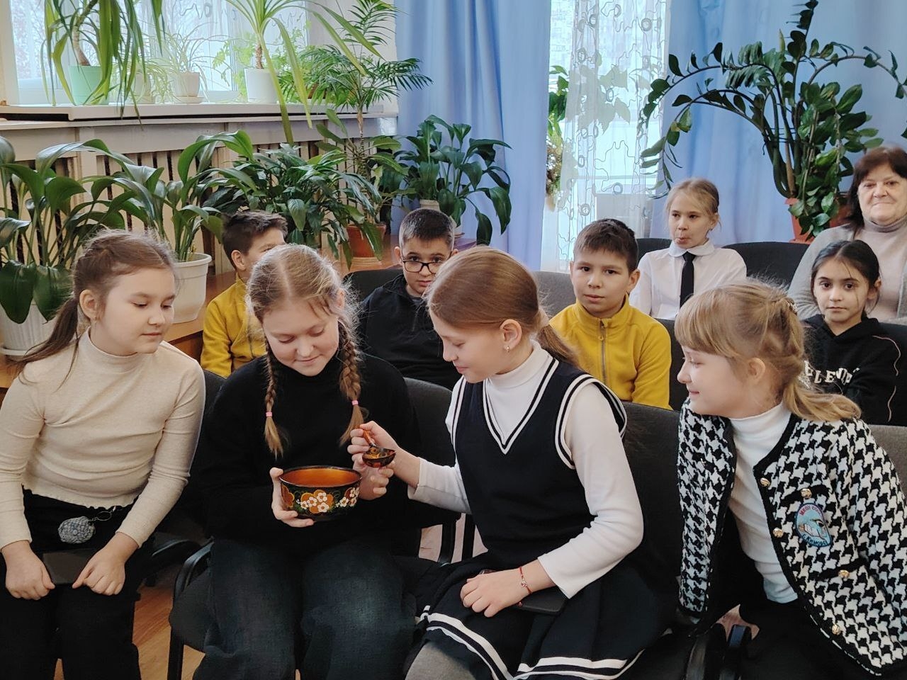Чтобы продемонстрировать, как единство проявляется в традициях, встреча в библиотеке началась с обращения к местному наследию: в этот день особое внимание уделили нашей малой родине — краю Тульских самоваров. Дети узнали, что первые самовары делали из меди, потом их стали изготавливать из латуни, железа, покрывать никелем и даже золотом или серебром.
