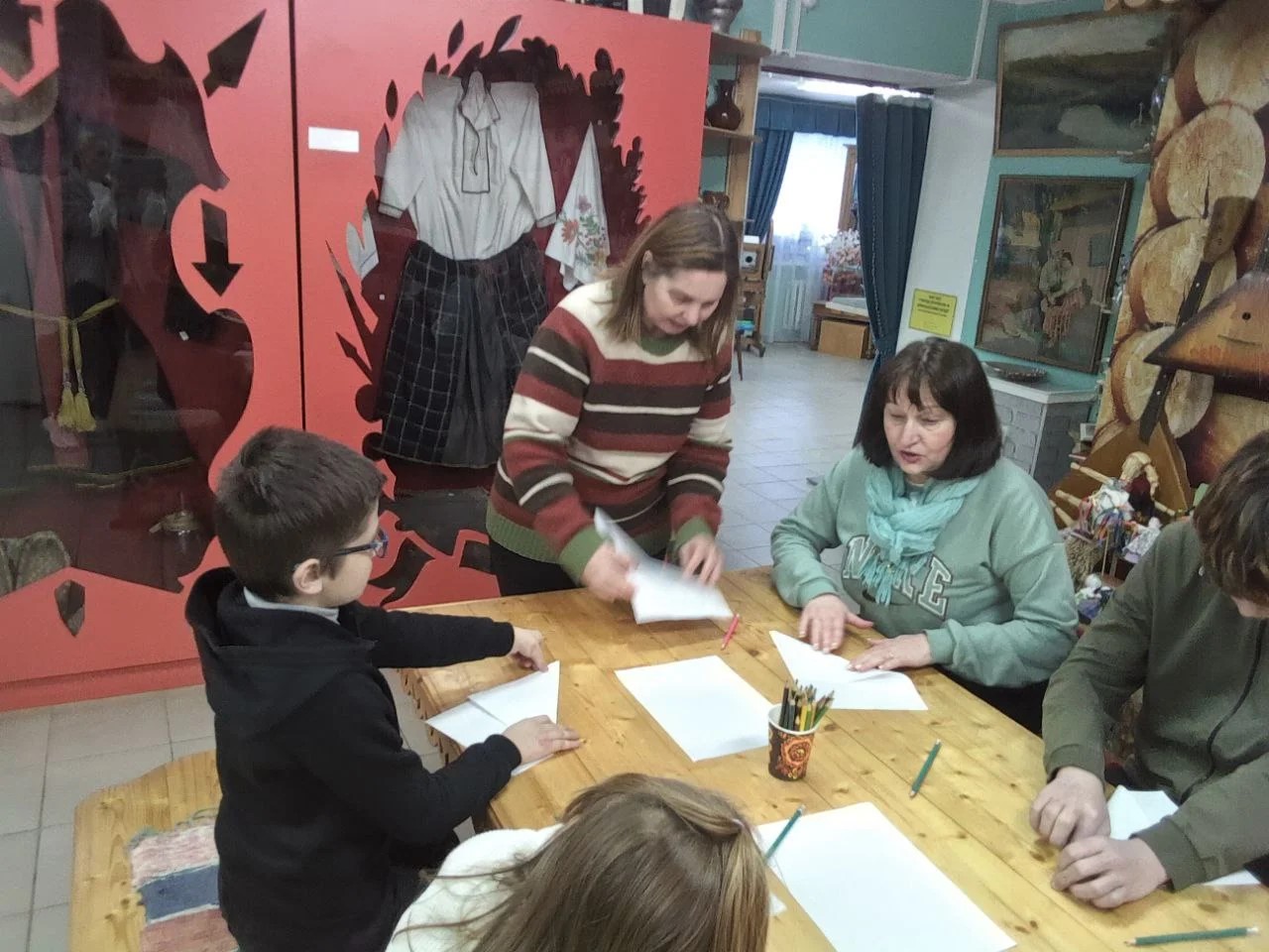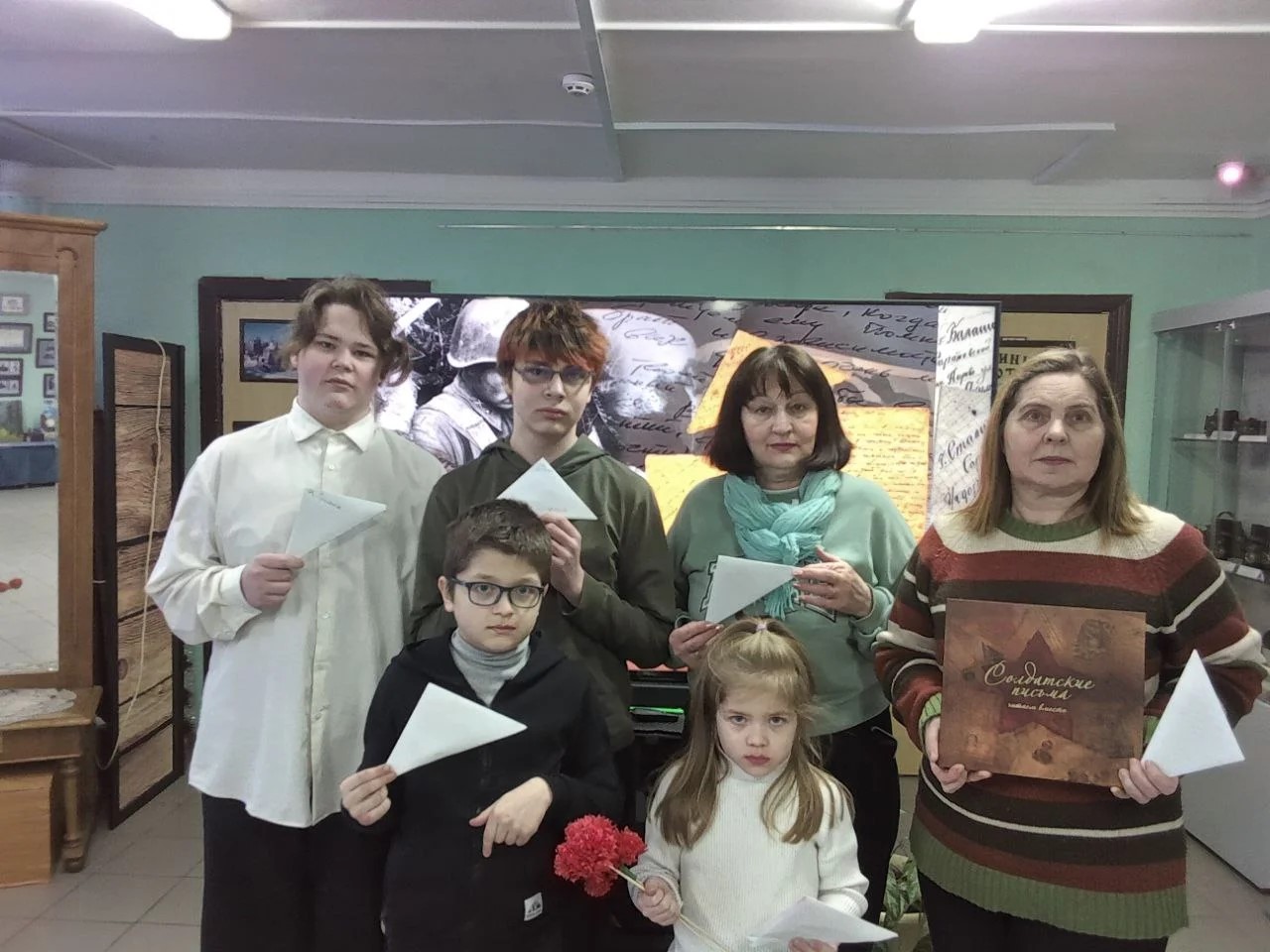 Практическую часть мероприятия организовала для ребят экскурсовод Марина Зебрева. Она рассказала о работе военно-полевой почты во время Великой Отечественной войны, о трогательной важности писем как на фронте, так и в тылу. Вместе с ребятами они написали письма поддержки для современных защитников нашей Родины - солдат СВО, сложили письма в форме треугольников, как когда-то, в годы Великой Отечественной войны - дети с энтузиазмом включились в работу.