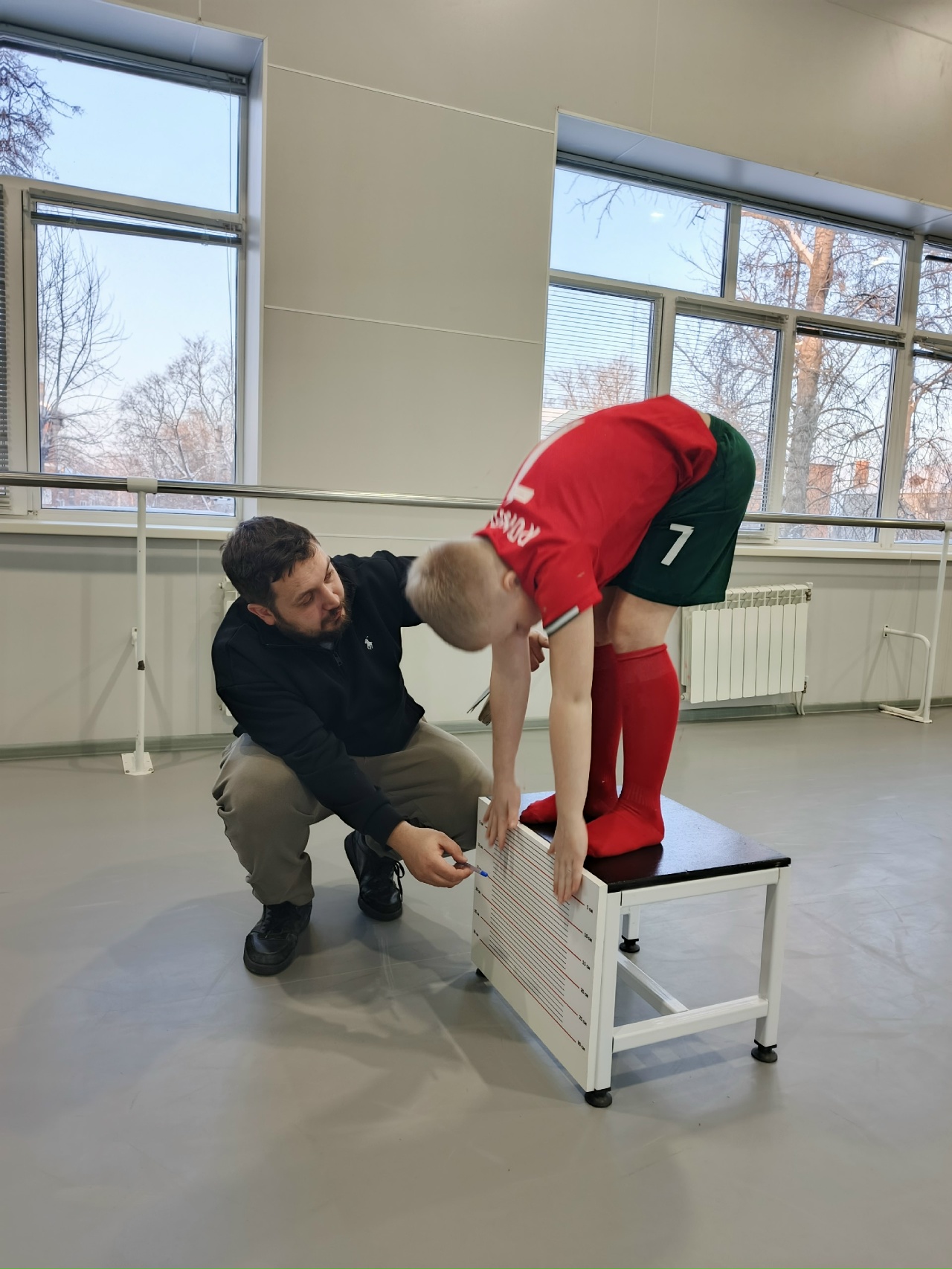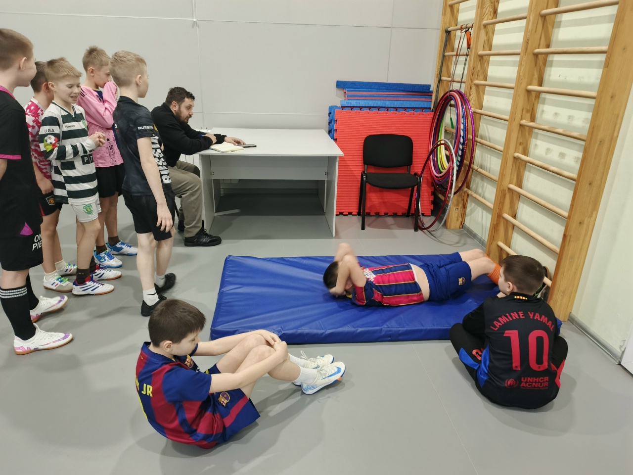 Спортивная часть знакомства с «ГТО» заключалась в выполнении упражнений из физкультурно-спортивного комплекса: наклон вперед с прямыми ногами на гимнастической скамье, сгибание и разгибание рук в упоре лежа на полу и поднимание туловища из положения лежа на спине.