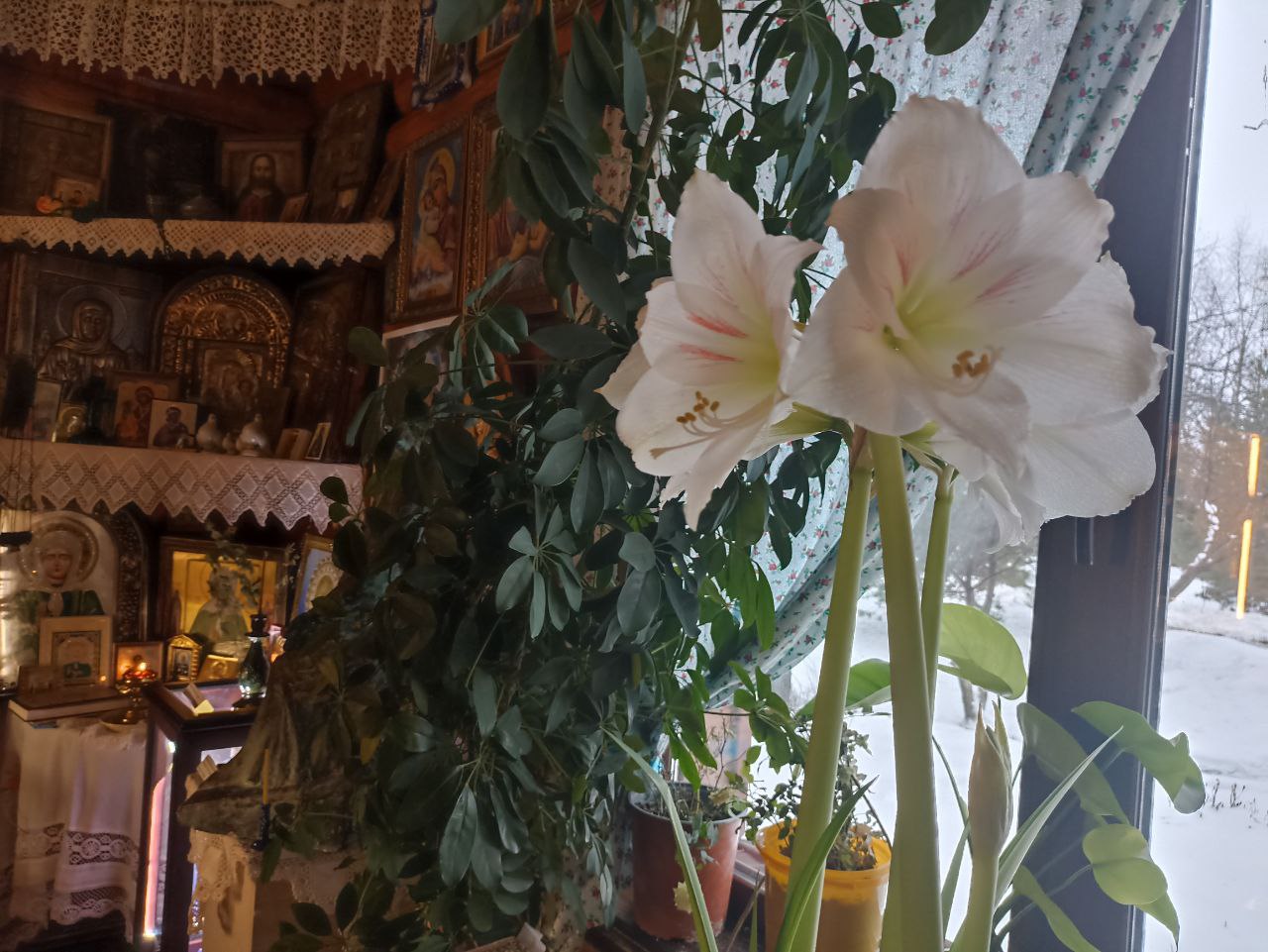 Эти слова одной известной современной песни применимы к цветущей в музее села Себина лилии. Дважды в году все любуются этой удивительной красотой. На четырех стрелках по четыре крупных белоснежных цветка с нежно-розовыми полосками ближе к середине. Пока не все распустились, но у посетителей музея еще будет время порадоваться и налюбоваться природной прелестью.