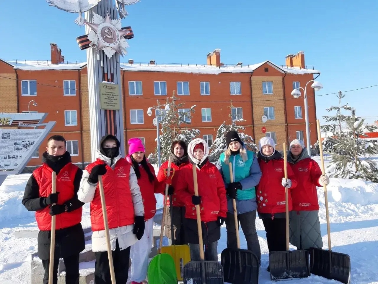 Участники акции «Снежный патруль» избавили мемориал «Журавли» от снежных заносов