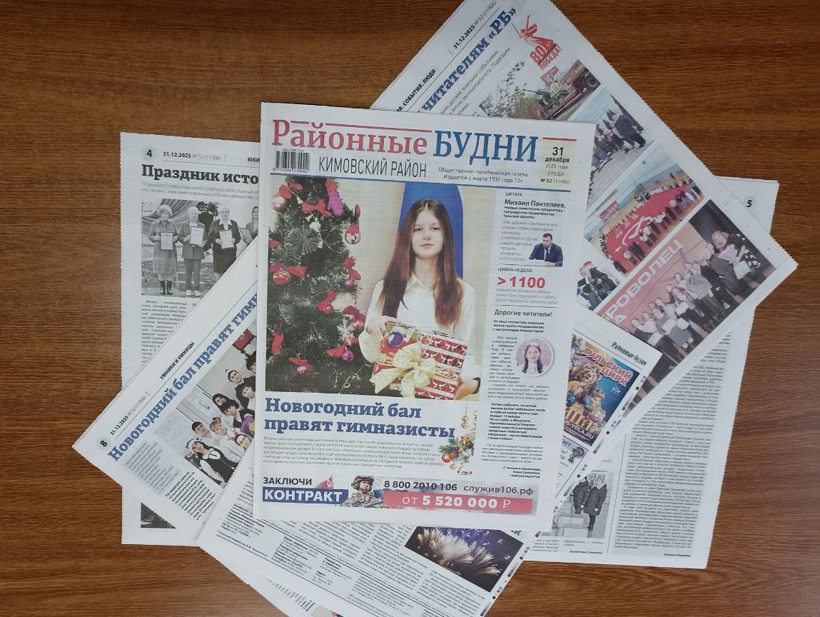 В предновогоднем выпуске газеты «Районные будни. Кимовский район» много материалов про подведение итогов года и поздравлений. Краткий обзор главных событий за год читатель найдет на страницах номера.