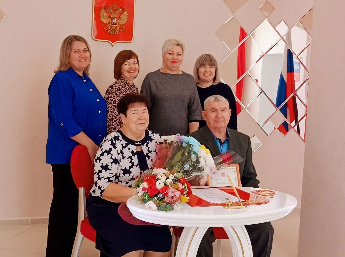 В Кимовском ЗАГСе принимала поздравления с золотым юбилеем супружества семья Ивана Ивановича и Веры Александровны Тропиных.