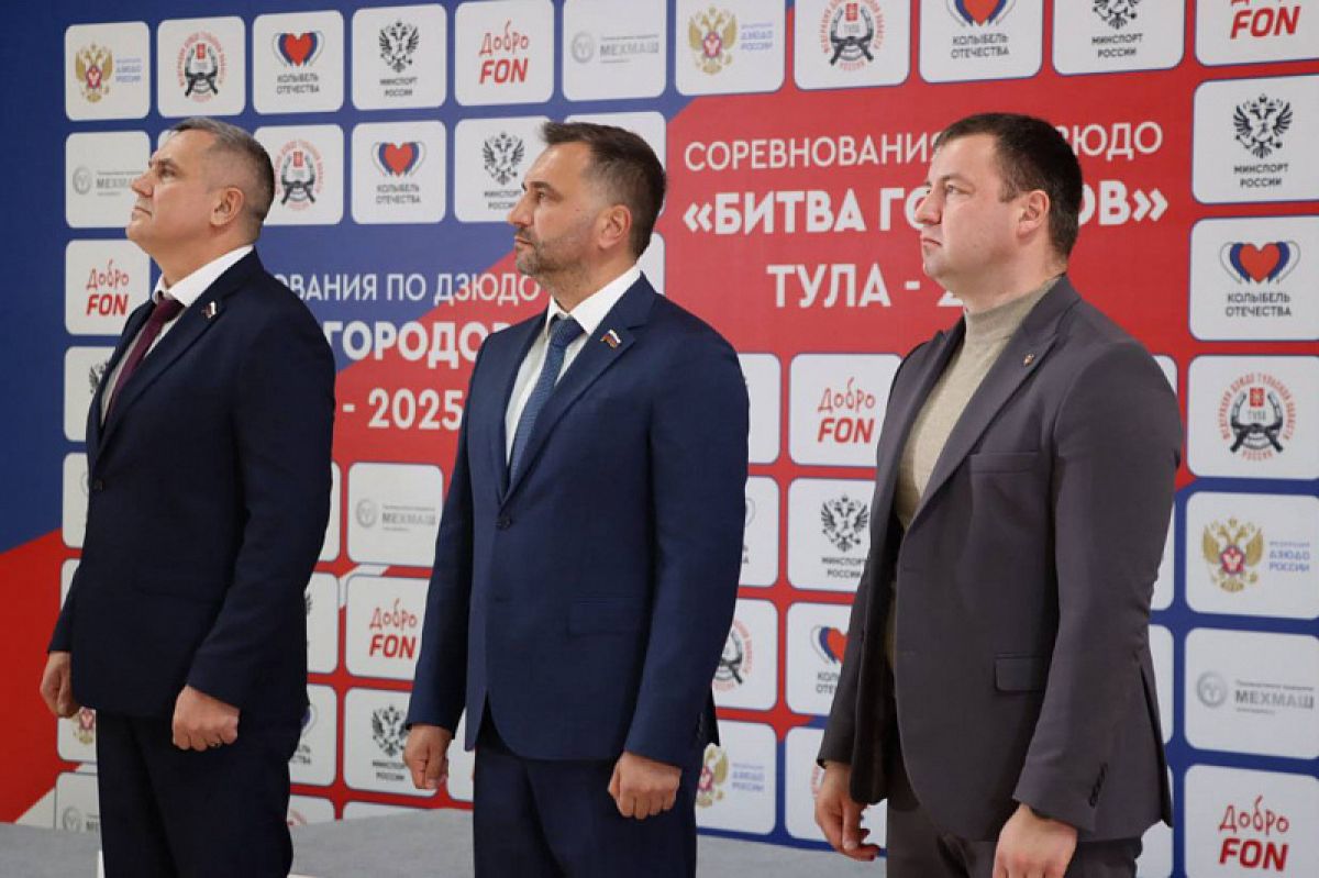 Депутат Тульской областной Думы, член фракции «Единая Россия» Геннадий Никитин приветствовал участников Всероссийских соревнований по дзюдо.
