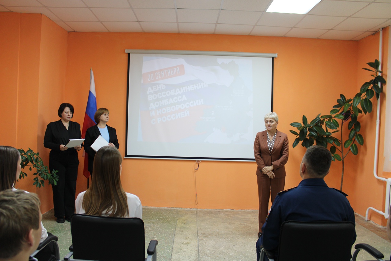 Присутствующая на встрече заместитель главы районной администрации МО Кимовский район Жанна Евсеева в своем выступлении отметила важность данного мероприятия и акцентировала внимание молодёжи на то, что воссоединение предопределено общей историей и культурой.