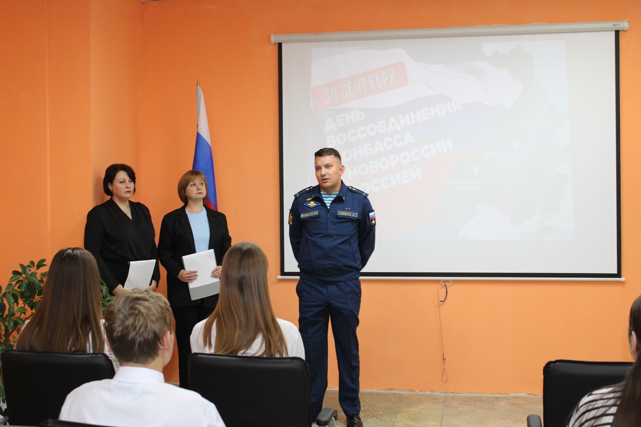Участник специальной военной операции Дмитрий Кувшинов поделился с присутствующими личным опытом, рассказал о трудностях, с которыми сталкиваются российские солдаты, защищая мирных жителей и отстаивая интересы России, отметил их героизм. Молодые люди задавали вопросы о моральном духе в войсках, оказываемой поддержке, а также о том, какие качества необходимы современному защитнику Отечества. Многие выразили желание внести свой вклад в общее дело, будь то волонтерская деятельность, гуманитарная помощь или просто поддержка российских военнослужащих.