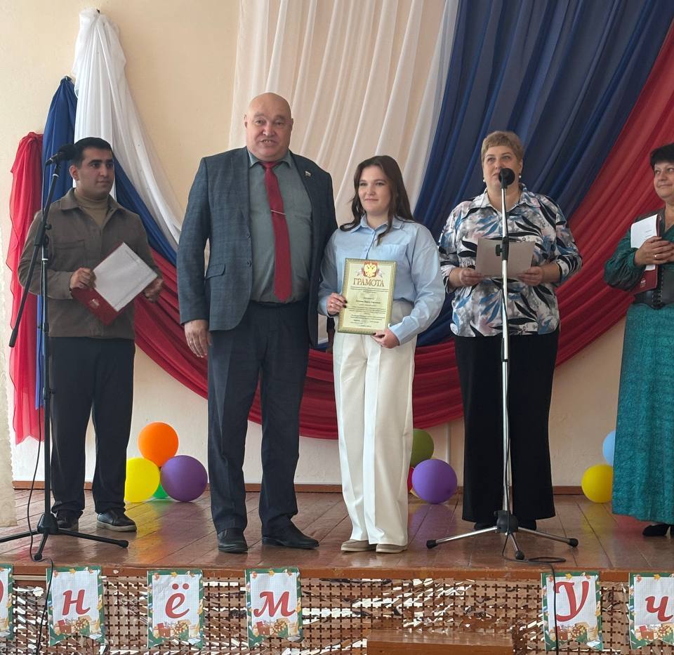 Особым моментом праздничного вечера стало торжественное вручение грамот. Директор школы Сергей Салихов и его заместитель Оксана Гукина с гордостью и признательностью обращались к педагогам, чьи имена звучали со сцены. Каждая грамота – это символ неустанного труда, профессионализма и неоценимого вклада в воспитание подрастающего поколения. Это признание их заслуг, терпения и веры в каждого ученика.