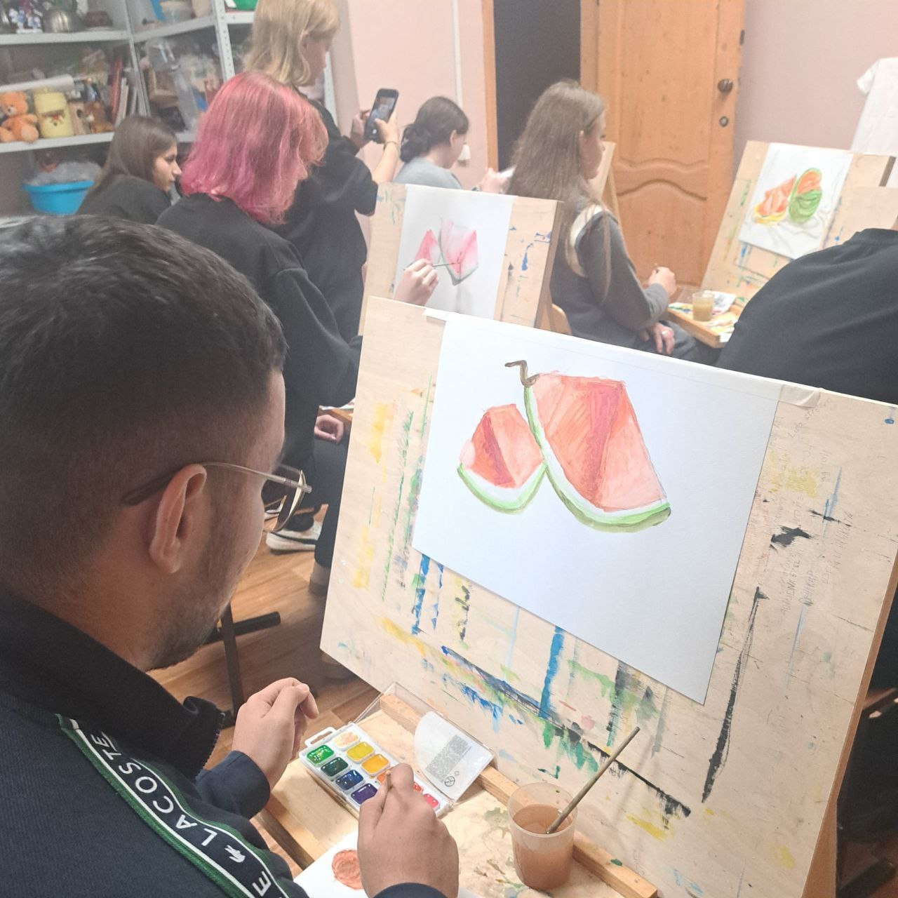 Любой желающий мог присоединиться к творческому мастер-классу по рисованию акварелью. А опытный педагог помог создать потрясающую картину с изображением аппетитного арбуза.