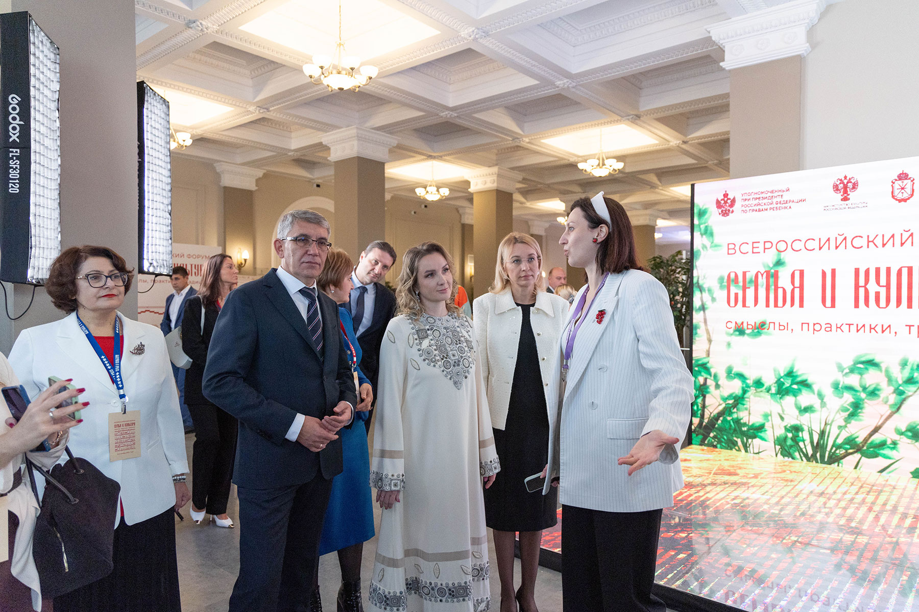В рамках Всероссийского форума «Семья и культура: смыслы, практики, традиции» была представлена галерея региональных социокультурных практик для семей с детьми. Работала выставка-хоровод «Игрушка 360» – проект Объединения центров развития культуры Тульской области - первая виртуальная интерактивная галерея глиняной игрушки в России. Также была представлена выставка картин Уполномоченного по правам ребенка города Москвы Ольги Ярославской — одну из работ она подарила Дмитрию Миляеву.