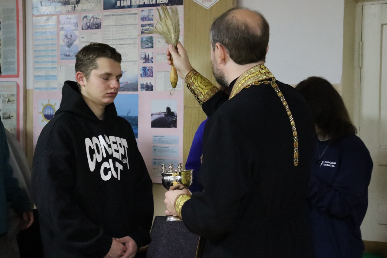 С духовными наставлениями и благословением к завтрашним воинам обратился благочинный Кимовского района, настоятель храма в честь иконы Божией Матери «Утоли моя печали» иерей Илия.
