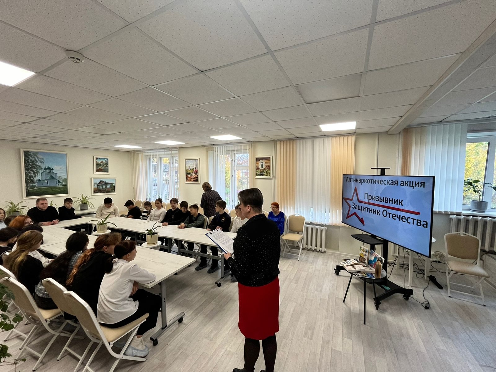 В Кимовской центральной районной библиотеке прошло важное мероприятие в рамках 2-го этапа Общероссийской антинаркотической акции «Призывник – защитник Отечества». Целью акции является предупреждение незаконного оборота наркотических средств среди лиц призывного возраста и военнослужащих, а также выявление граждан, допускающих немедицинское потребление наркотических средств при призыве, поступлении на военную службу по контракту и в военные образовательные организации.