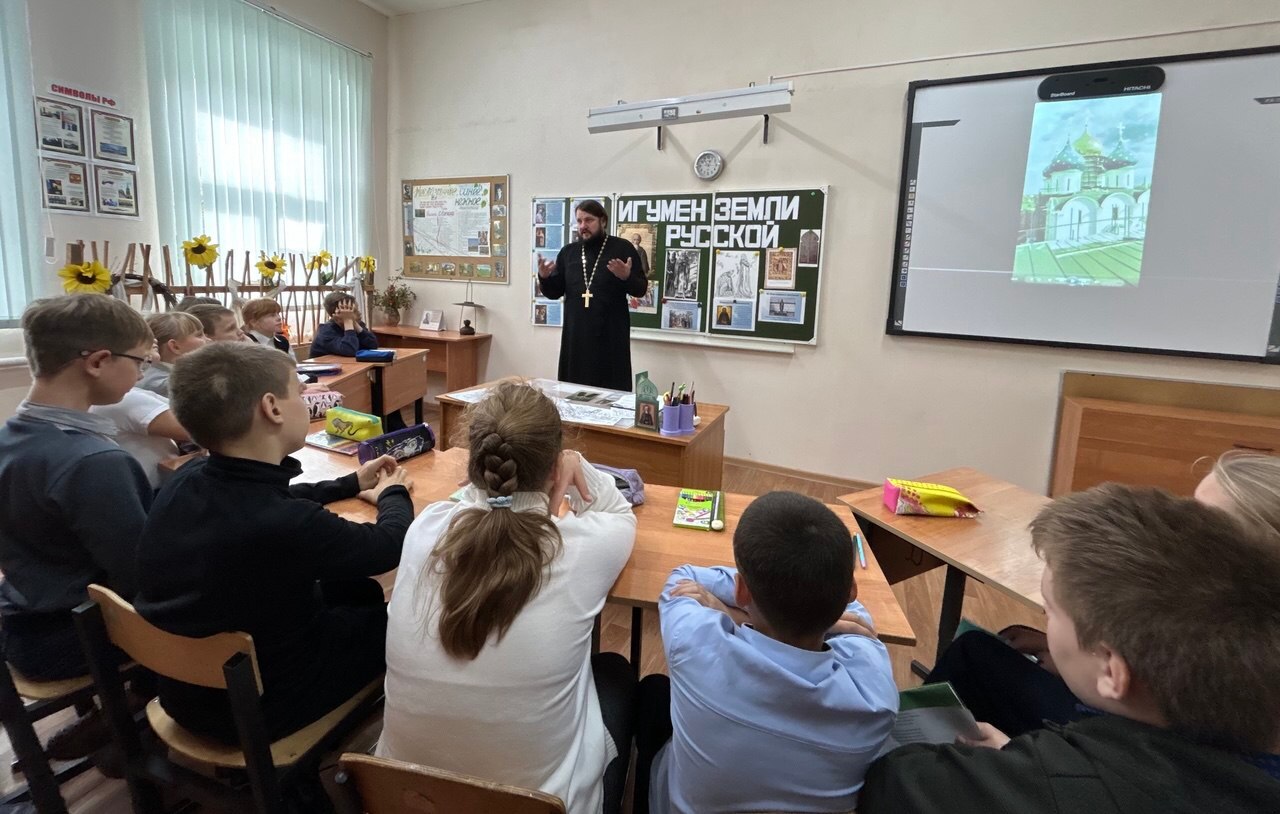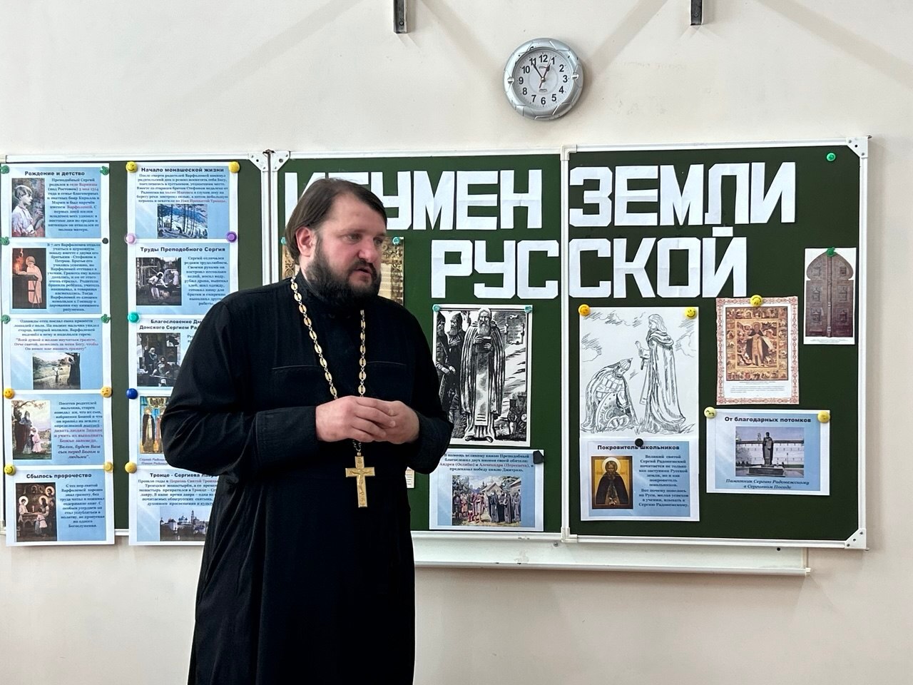 Приглашенным гостем беседы стал настоятель Свято-Введенского храма отец Георгий. Отец Георгий поделился своими впечатлениями о недавней поездке в Сергиев Посад и поведал интересные факты о знаменитом монастыре Свято-Троицкой Сергиевой Лавры. Своими вдохновляющими словами батюшка пожелал всем ребятам успехов в учебе и духовной жизни.