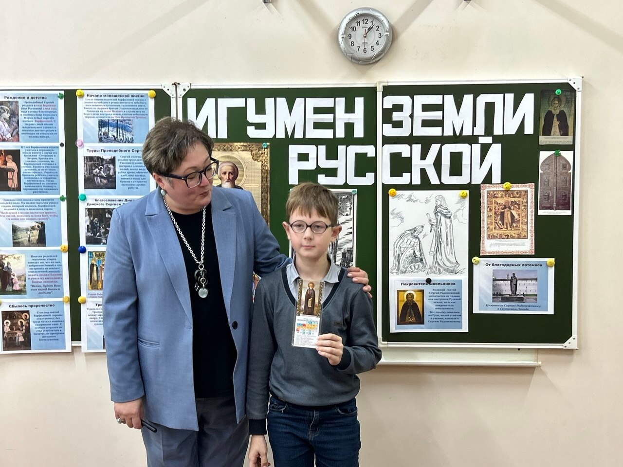 Завершением мероприятия стала творческая работа — дети создали красочные рисунки, посвящённые разным эпизодам жизни Преподобного Сергия, а также приняли участие в викторине о жизни и дениях Святого. По итогам игры самый активный участник, ученик 4-го класса П. Родькин, получил памятный подарок — сувенир из самой знаменитой святыни нашей страны!