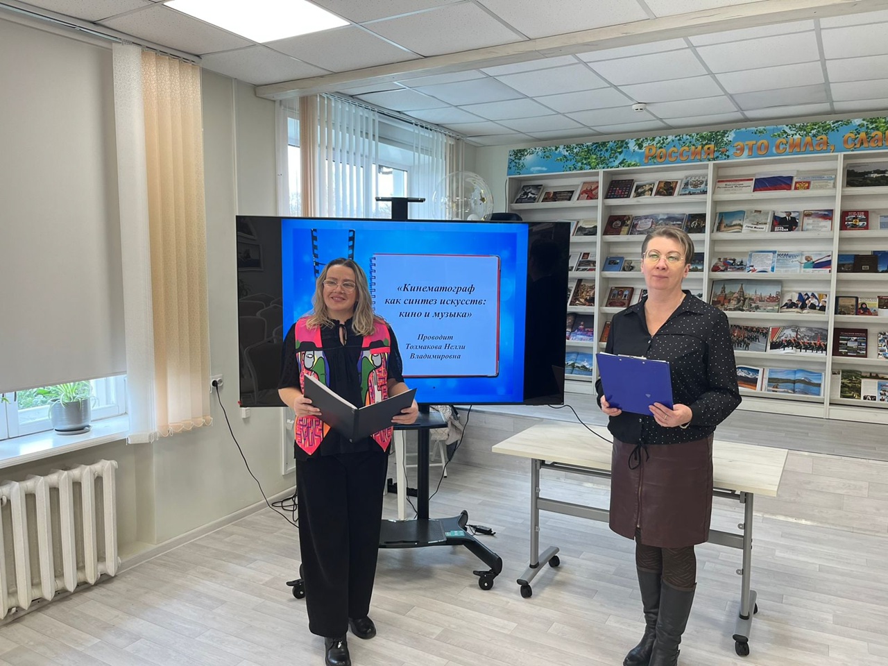 В уютном зале собрались любители кино и музыки, чтобы прикоснуться к тайне их волшебного союза. Встречу открыла ведущая вечера Ольга Масальская, отметившая, что музыка и кино сродни Орфею и Эвридике - их невозможно разделить. Они тянутся друг к другу, создавая гармонию, в которой рождаются великие шедевры. С тех пор, как кино стало сопровождаться звуковой дорожкой, прошло немало лет, и сегодня их союз неразделим, а музыку часто можно по праву считать полноценным героем фильма. В чем же ее магия? Почему музыка напрямую влияет на наше впечатление от кино? Об этом рассказала сотрудник библиотеки, преподаватель Кимовской детской школы искусств Нелли Толмакова, для которой кино и музыка - не просто увлечение, а часть души. Её сценарий «Кинематограф как синтез искусств: кино и музыка» стал настоящим путешествием в мир искусства.