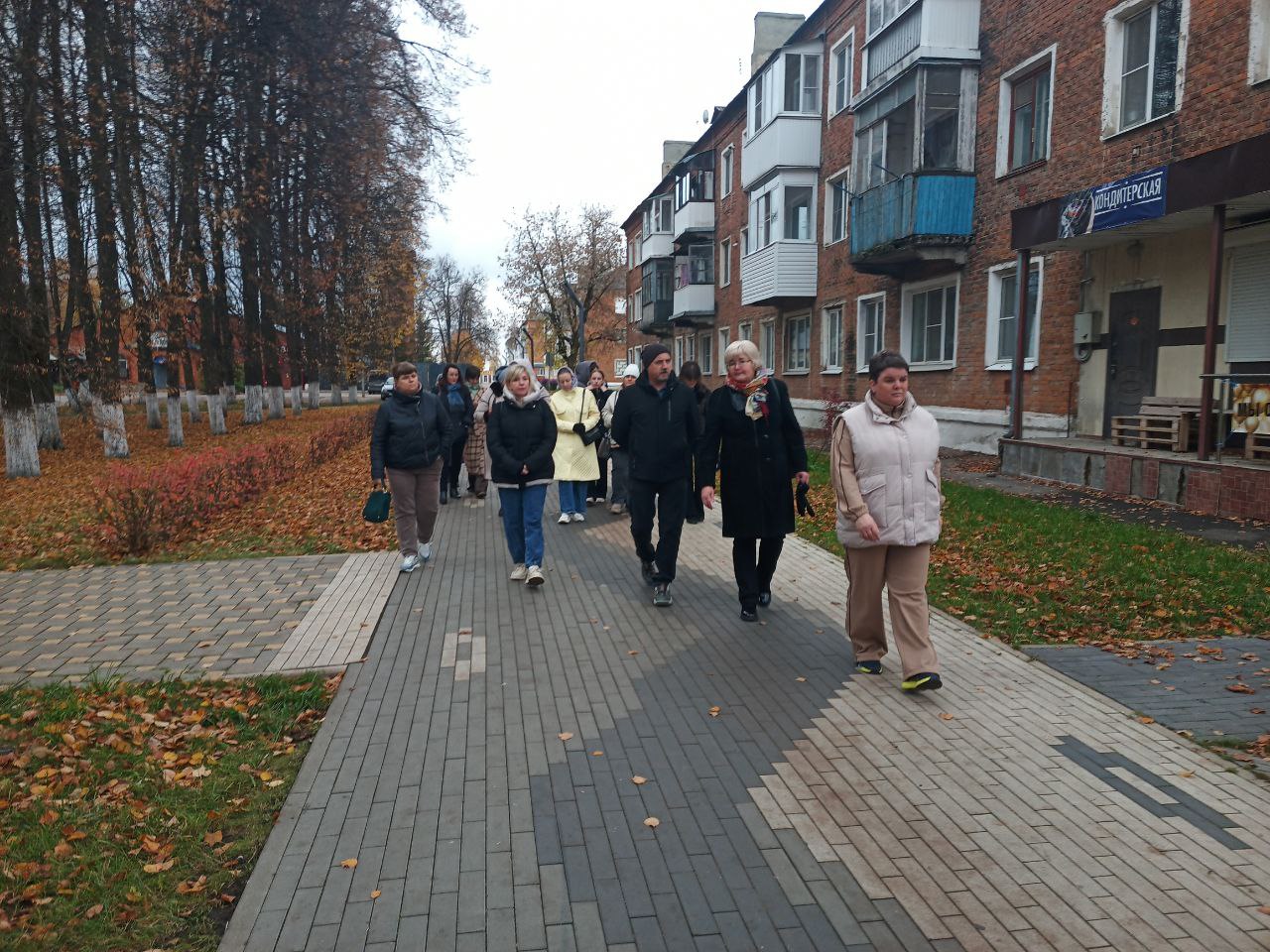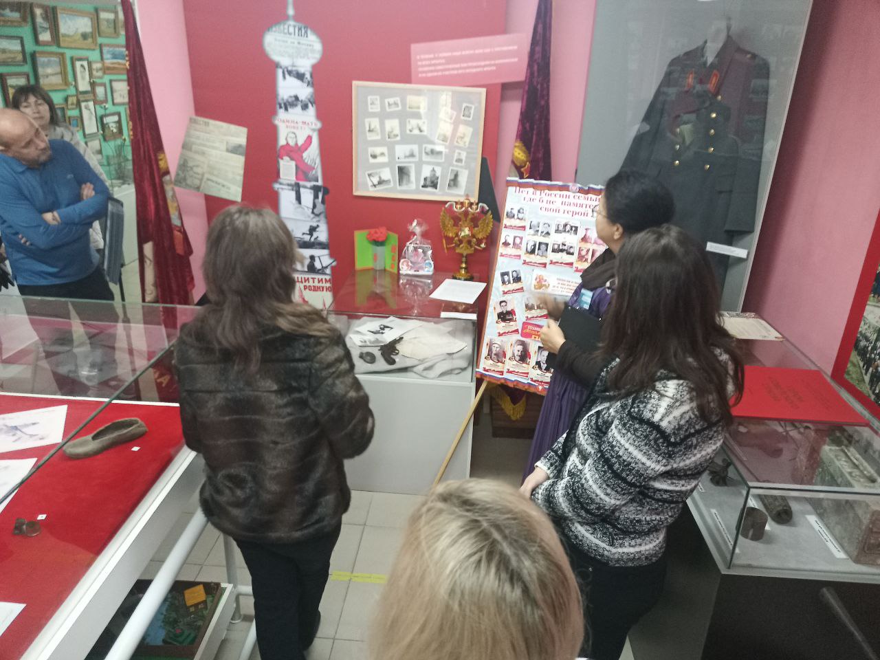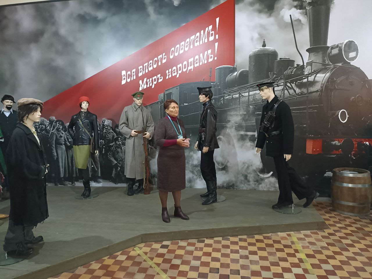 Первую остановку гости Кимовска сделали в музее 100-летия Октябрьской революции на железнодорожной станции, где узнали о жизни Епифанского уезда в революционное время, о значении Сызрано-Вяземской железной дороги в развитии деревни Михайловки (так раньше назывался Кимовск), о становлении советской власти в кимовском районе в сложный послереволюционный период. Педагогов заинтересовала информация о школьном образовании и детско-молодежном движении в советское время. Во время пешеходной прогулки к основному музею на улице Толстого экскурсанты ознакомились с самыми старыми историческими местами и зданиями, сыгравшими в истории населенного пункта значимую роль.