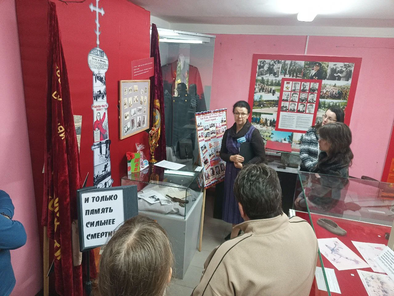 Экскурсия по основной экспозиции была ещё более насыщенной и познавательной, ведь залы Кимовского историко-краеведческого музея хранят артефакты, начиная с III-VI тысячелетия до нашей эры. Изучая экспонаты в «Крестьянской избе» и в зале «Епифань и Епифанский уезд», гости узнали много нового из жизни наших предков – и крестьян, и купцов, и дворян. А история освобождения кимовского района от фашистских оккупантов в декабре 1941 года напрямую связывает населенные пункты Кимовска и Сокольников, ведь их освобождали одни и те же солдаты 10-й армии.
