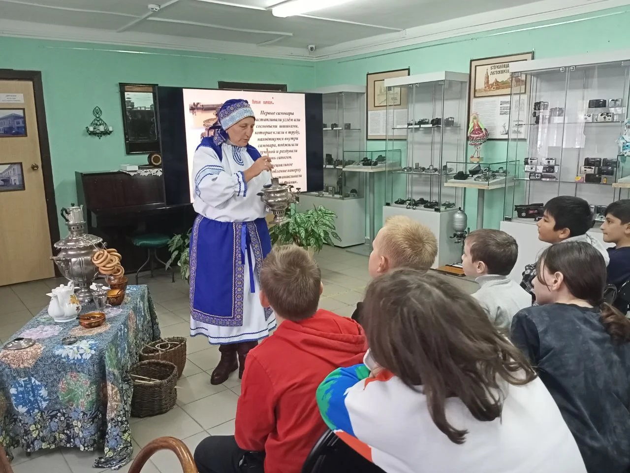 Школьники с интересом узнали, что самовар был не просто чайником, а целым инженерным сооружением, работающим на дровах или угле.