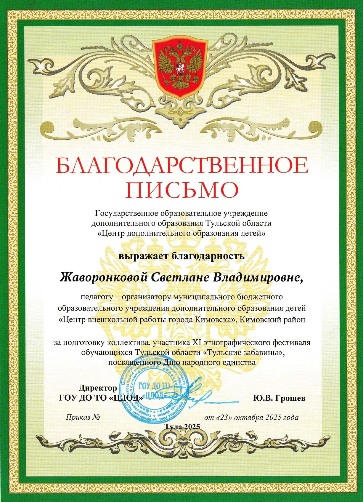 Под занавес октября в Центре дополнительного образования детей в Туле прошёл XI этнографический фестиваль обучающихся Тульской области «Тульские забавины», посвященный Дню народного единства.