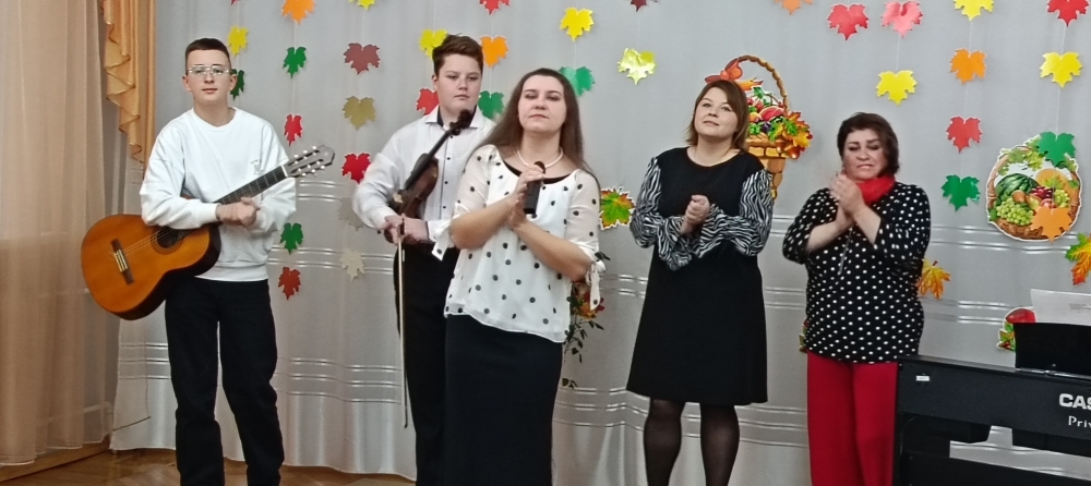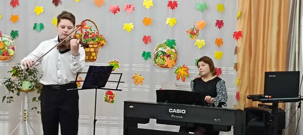 Атмосферу гармонии и красоты, царившие в зале, поддержали преподаватели и учащиеся Детской школы искусств: Иван Капишников, учащийся по классу скрипка (преподаватель Оксана Грызункова, концертмейстер Ольга Капишникова), исполнил произведение композитора Д. Берка «Платье в горошек», в исполнении Дмитрия Иванова, учащегося по классу гитара (преподаватель Роман Королев) прозвучал Испанский вальс. Восторженно красиво звучал романс «Красный сарафан», который проникновенно исполнила Ассоль Земисева, преподаватель ДШИ по классу эстрадного вокала (концертмейстер Елена Любушкина). А песню «Мы желаем счастья вам» вместе с Ассоль Юрьевной пели все гости и сотрудники детского сада.