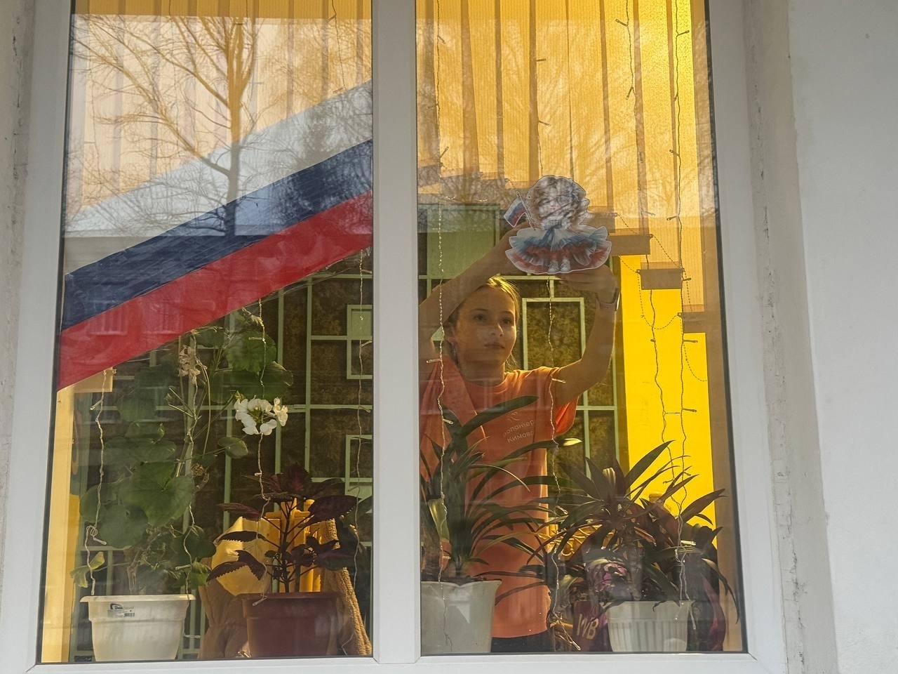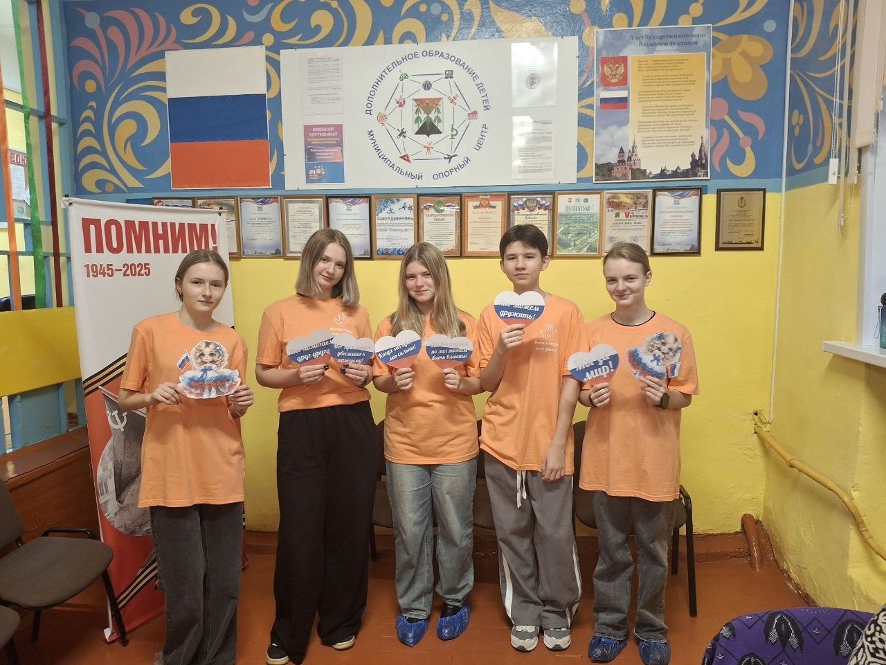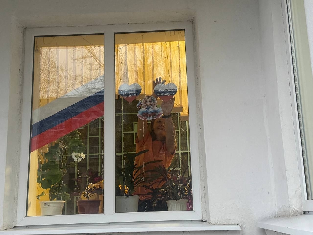 В преддверии праздника волонтеры Центра Ксения Воробьёва, Дарья Зарщикова, Илья Жаворонков, Евгения Фирсова, Елизавета Чернышова вместе с педагогом-организатором Светланой Жаворонковой приняли участие в акции «Окна Единства», украсив окна здания Центра яркими тематическими картинками.