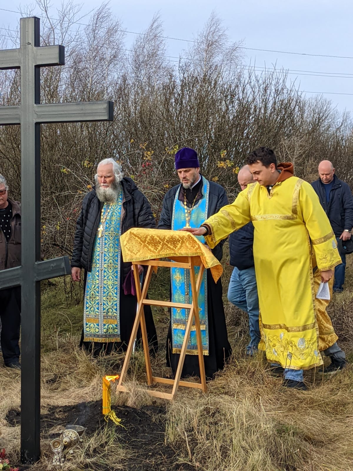 Участие в праздничном событии принял настоятель Свято-Никольского собора в Епифани иерей Александр Звягин со своими помощниками, которые у поклонного креста провели молебен.