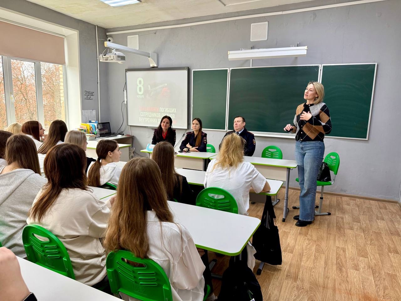 Старший инспектор Управления организации деятельности участковых уполномоченных полиции и по делам несовершеннолетних России по Тульской области Марина Черных в форме открытого диалога напомнила учащимся об административной и уголовной ответственности подростков, обсудила темы: буллинг, комендантский час, терроризм сегодня.