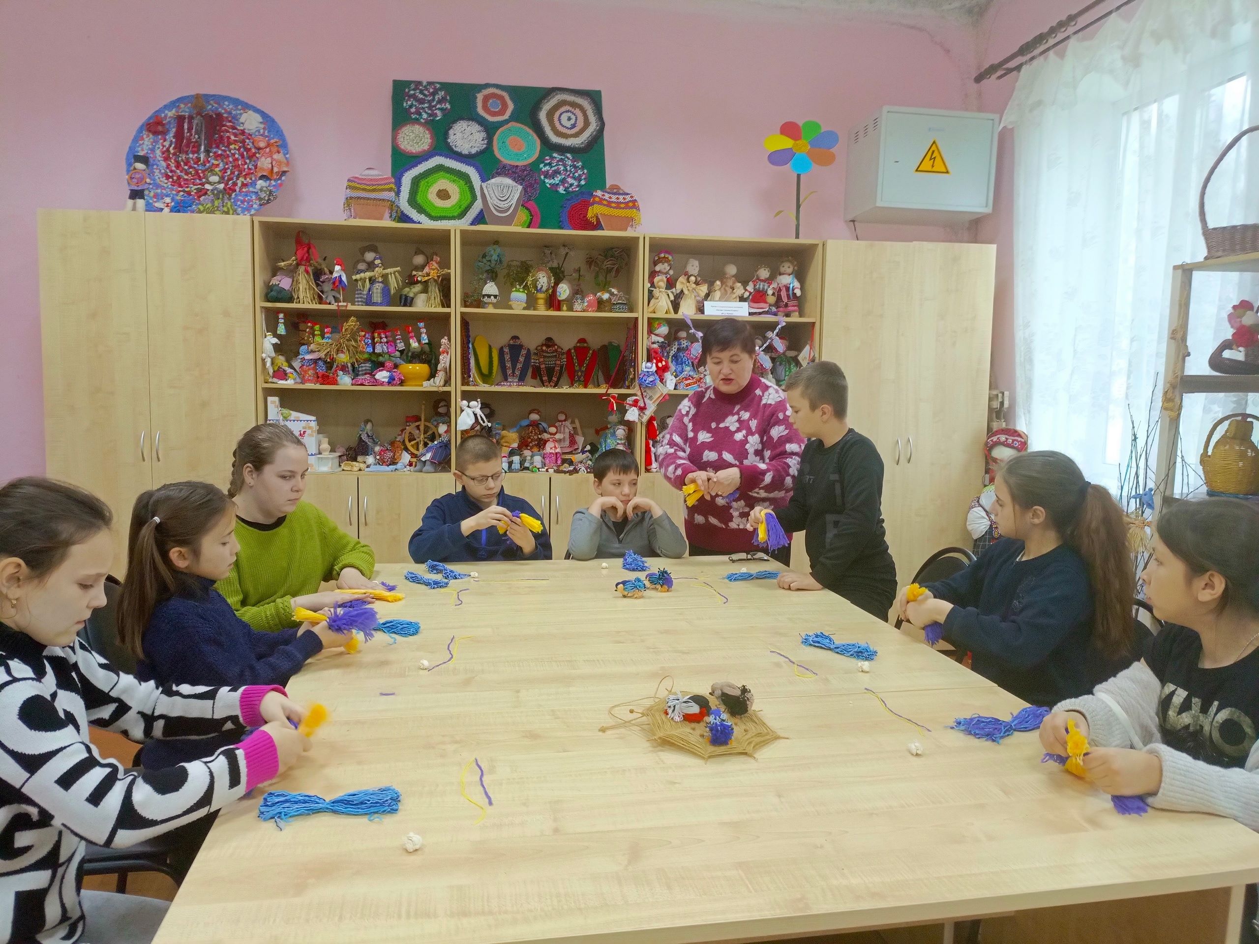 Ребятам показали, как можно быстро, без помощи мам и пап сделать кормушку из пластиковой бутылки. Дети с интересом отгадывали загадки про птиц и играли в игру «Прилетели птицы». Затем для них провели мастер-класс по изготовлению синички из ниток. Все справились с работой и взяли своих синичек домой.