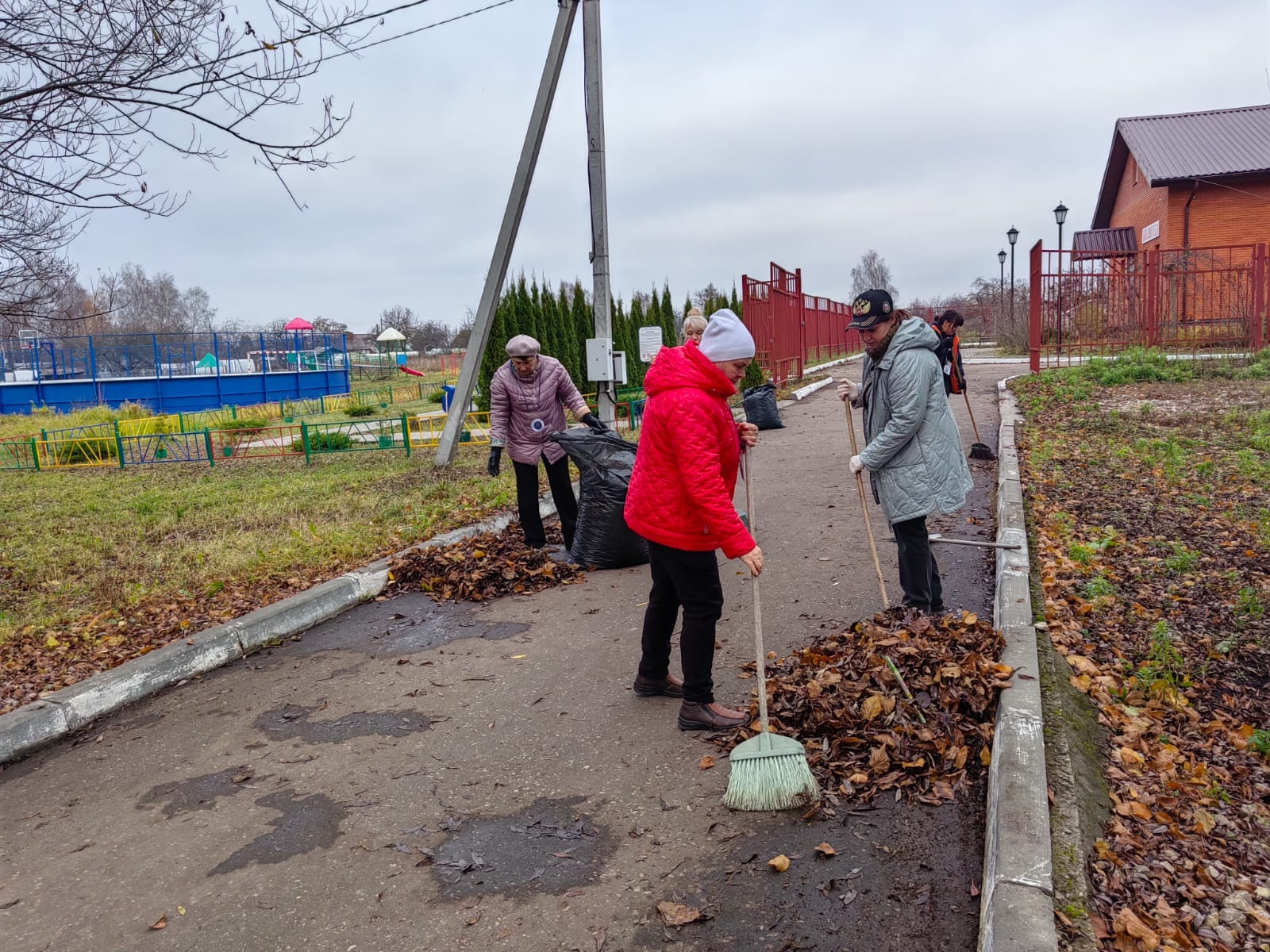 Вооружившись граблями и метлами они очистили от опавшей листвы входную группу и аллею, собрали мусор и подмели дорожки, привели в порядок памятный обелиск.