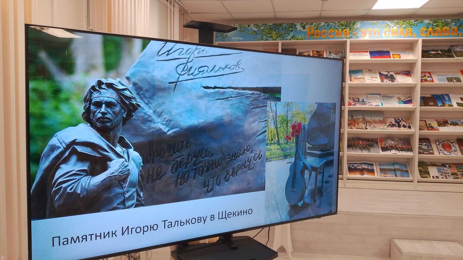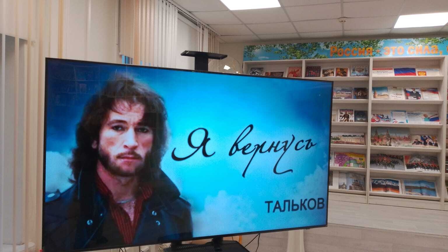 На встречах в библиотеке с экрана звучал голос Игоря Талькова, звучали его знаменитые песни: «Летний дождь», «Чистые пруды», «Россия», «Маленький город», «Я вернусь», звучали его стихи, их читали молодые кимовчане.
