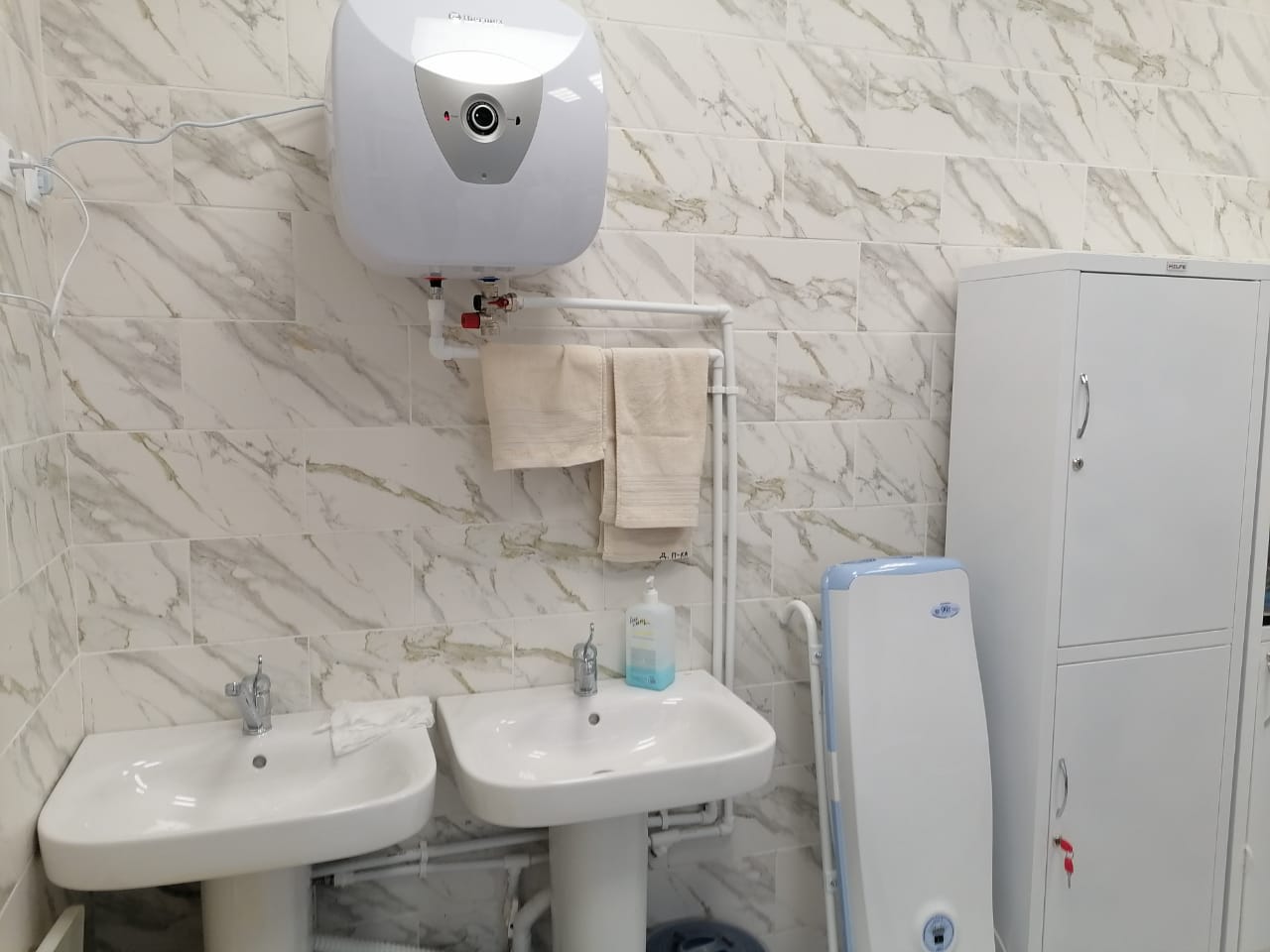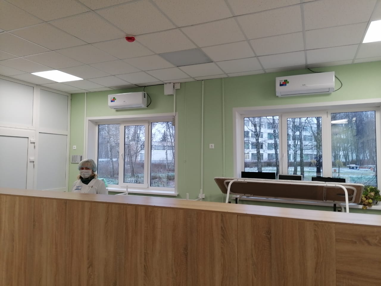 Здесь обновлены стены, заново залиты полы, заменены окна, двери потолки и светильники, системы электроснабжения, водоснабжения, канализации, установлена новая сантехника, подключен интернет, установлена система видеонаблюдения, радиооповещения и кондиционирования, закуплено и установлено оборудование, в том числе весы, ростомеры, ультрафиолетовые облучатели, для врачей приобретены новые тонометры, фонендоскопы, электронные термометры, для лор-кабинета — новый набор инструментов. В кабинетах установлена новая мебель, и врачи уже ведут прием маленьких пациентов, делают прививки и массаж.