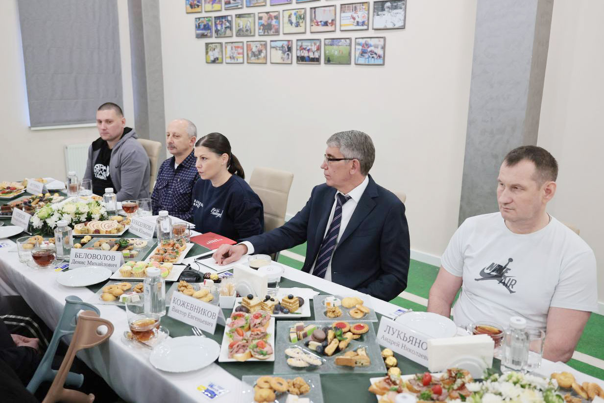 Дмитрий Миляев и Ирина Куксенкова пообщались с ветеранами СВО. Ребята задали ряд вопросов о мерах поддержки, реабилитации, получении выплат, высказали пожелания о развитии и продвижении адаптивного спорта в регионе.