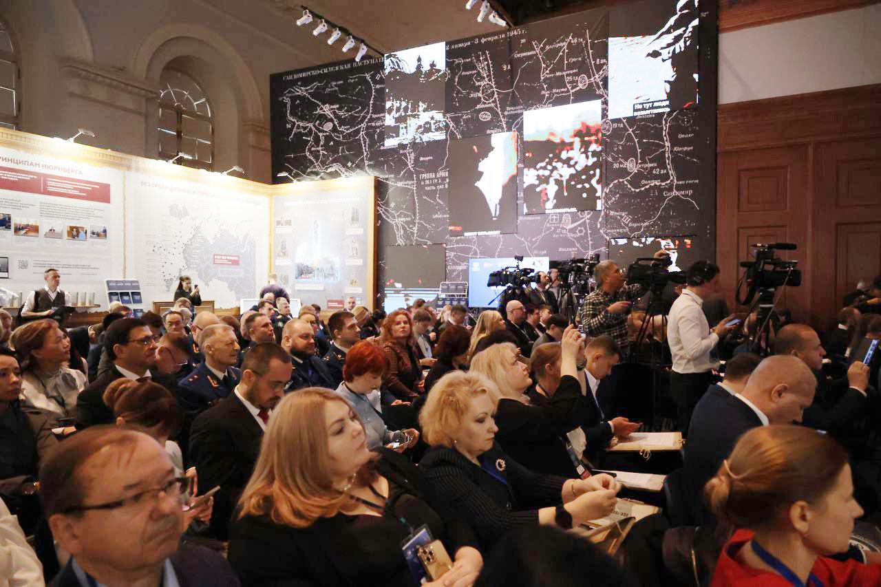 Мероприятие проходит в Центральном выставочном зале «Манеж» в реконструкции зала № 600 Дворца правосудия в г. Нюрнберге, где в 1945-1946 гг. состоялось рассмотрение уголовного дела по обвинению главных военных преступников. Форум организован в качестве продолжения проекта «Без срока давности», посвященного сохранению памяти преступлений нацистов и их пособников против мирного населения на оккупированных территориях РСФСР в годы Великой Отечественной войны. Руководитель Национального центра исторической памяти при Президенте РФ Елена Малышева провела экскурсию по выставке для Татьяны Голиковой, Сергея Нарышкина и других участников форума.