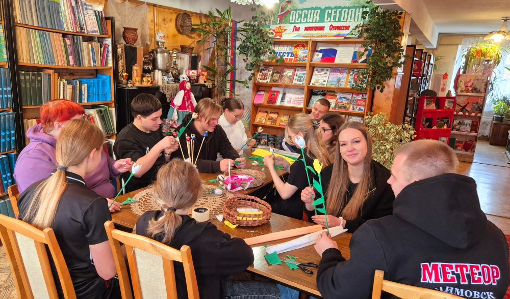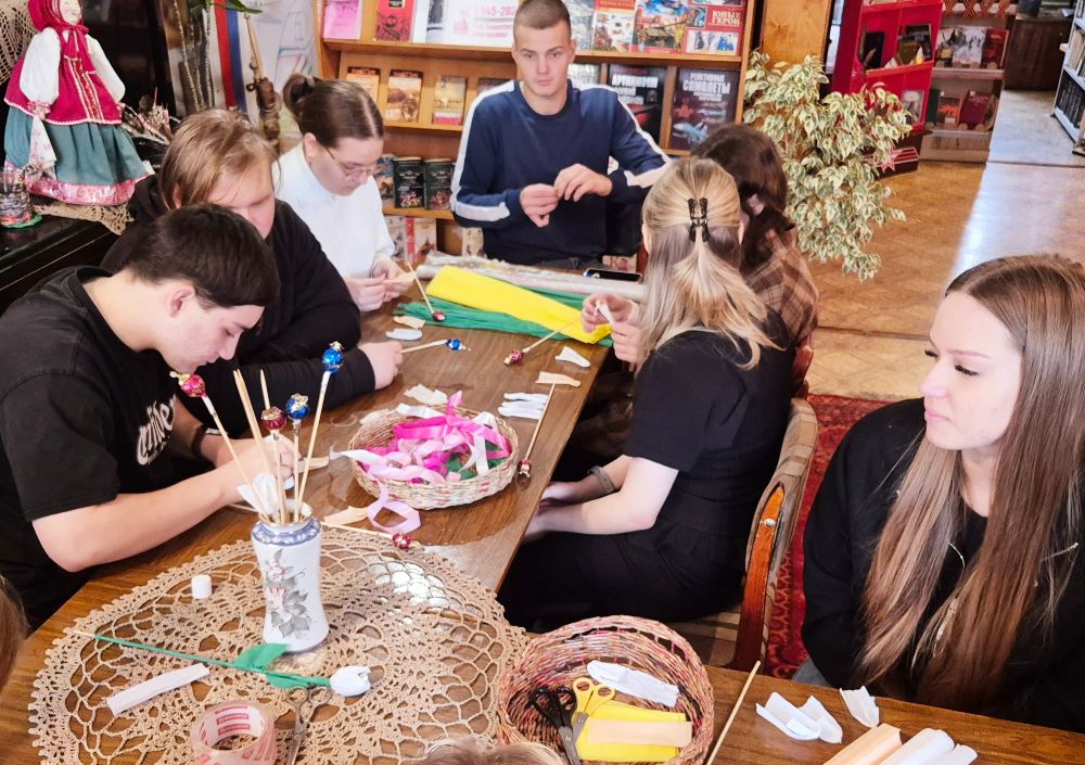В городской библиотеке № 1 муниципального бюджетного учреждения культуры «Кимовская межмуниципальная центральная районная библиотека» в рамках реализации программы «Пушкинская карта» прошел мастер-класс «Цветок для мамы», участниками которого стали учащиеся средней школы № 3.