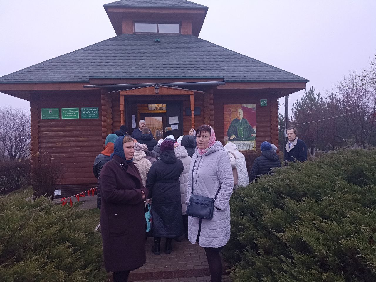В это время и в течение всего дня в музей Матроны Себинской Московской непрерывным потоком шли люди. В том числе десять групп, приехавших на автобусах из Воронежа, Рязани, Тулы и Щекина Тульской области, Москвы и Подольска, Железногорска Курской области, Липецка.