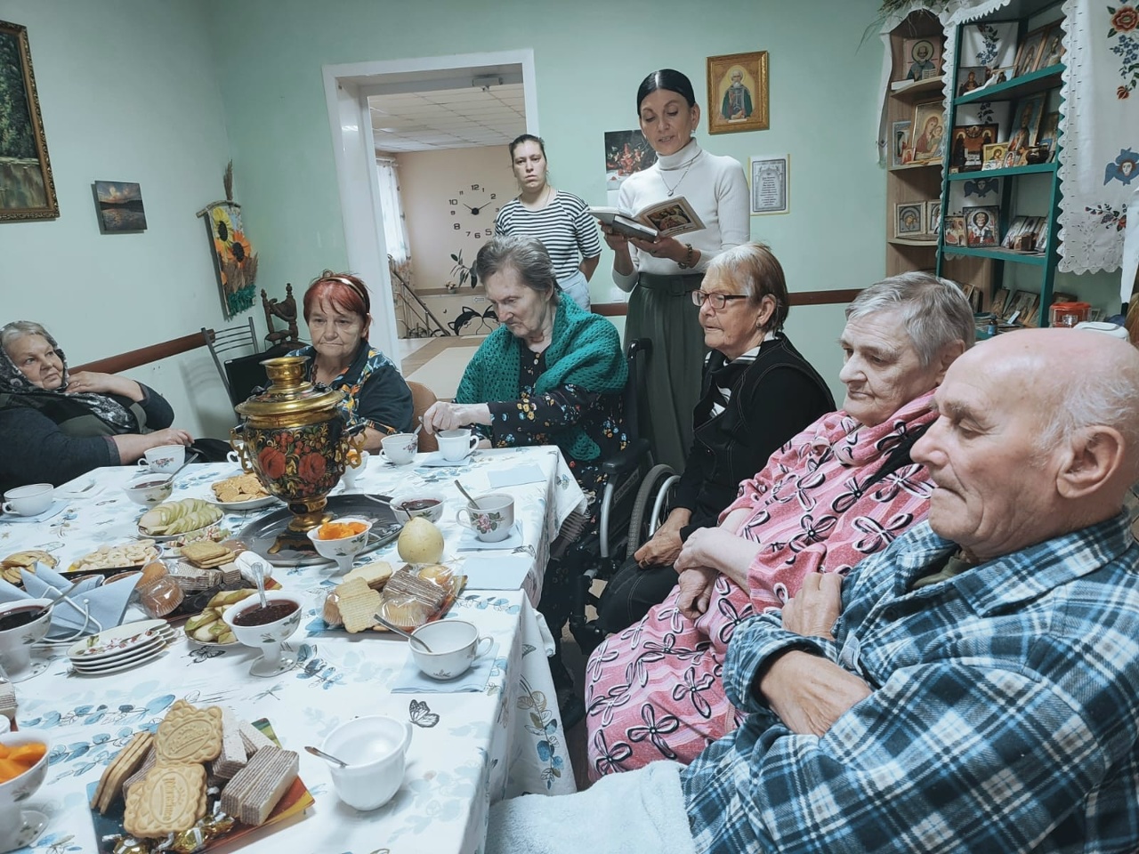 Продолжая добрые народные традиции, благополучатели Епифанского стационарного отделения для граждан пожилого возраста и инвалидов по типу дом-интернат собрались в этот день на православный час с чаепитием, не забыв позвать гостей. Специалист отделения рассказала собравшимся об этом любимом многими празднике, о том, как же архангел Михаил удостоился своего высокого звания, какие Ангельские чины есть в невидимом мире и почему мы в этот день можем поздравлять всех с днём Ангела.
