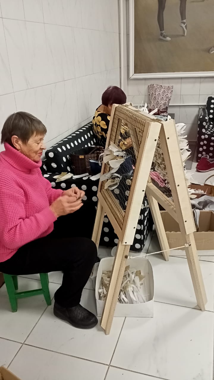 Тогда Нина Левкина обратилась за помощью к предпринимателю Александру Бритвину, который, узнав о том, что женщины занимаются изготовлением маскировочных изделий для воинов, согласился помочь. Он вместе с мастером Александром Антошиным сконструировал специальные подставки, которые на следующий день были изготовлены и переданы женщинам.