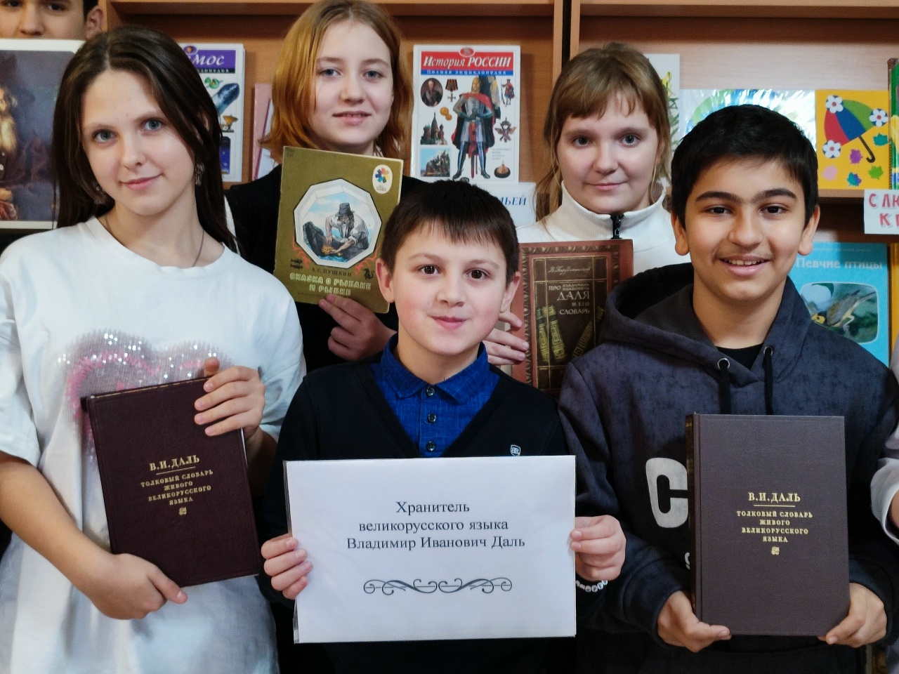 Сотрудник библиотеки рассказала ребятам об удивительной жизни В.И. Даля, непростом пути от моряка и врача до страстного собирателя слов, и о его неиссякаемом таланте. Этот удивительный человек посвятил свою жизнь русскому языку, русскому народу, русскому слову.