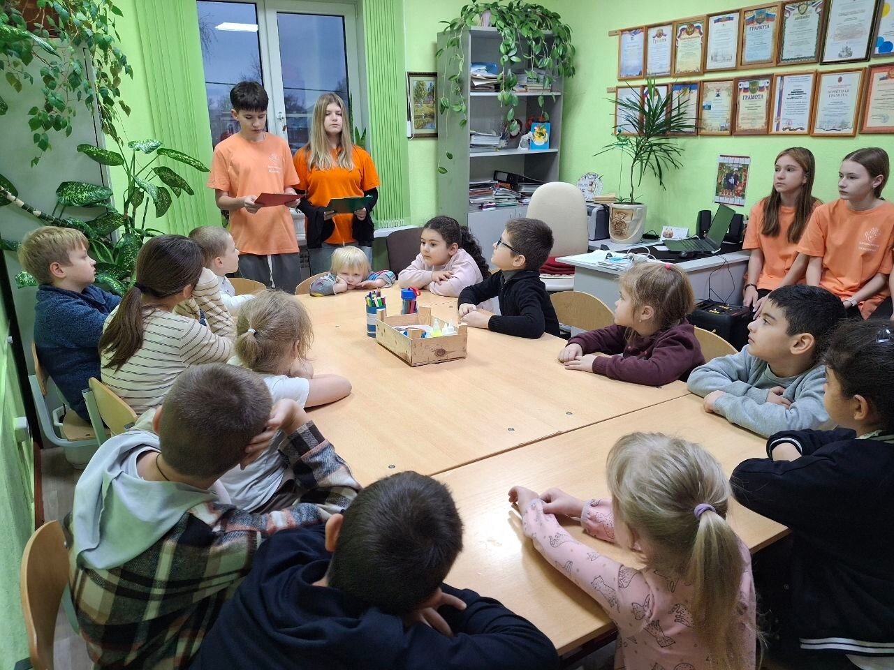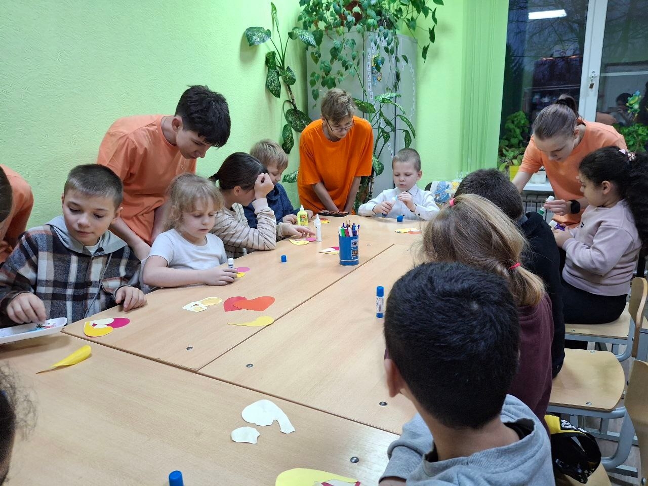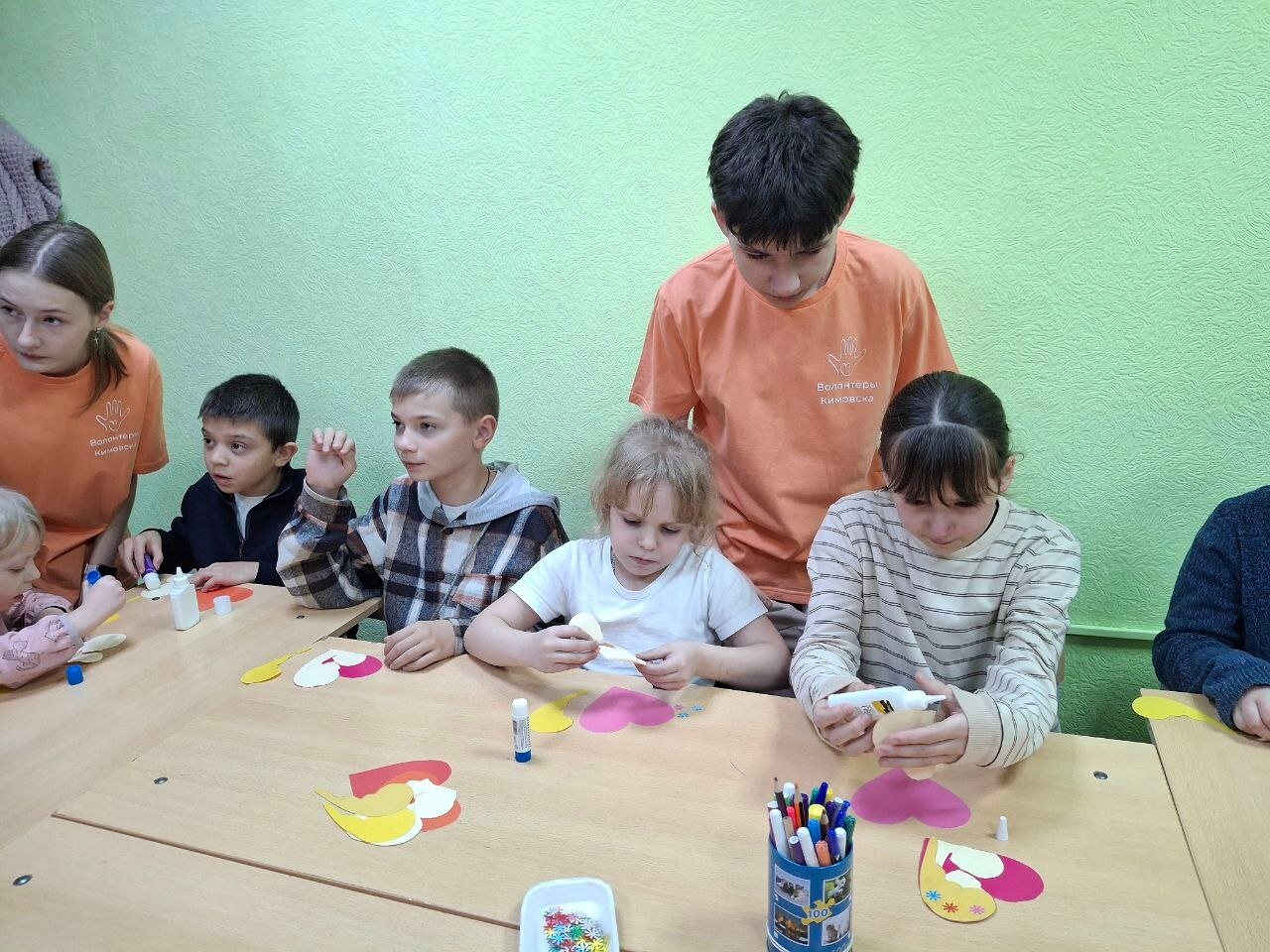Волонтёры Центра внешкольной работы Дарья Зарщикова, Илья Жаворонков, Евгения Фирсова, Дмитрий Полетавкин, Ксения Воробьёва, Валерия Егрина, Асель Тюрина вместе с педагогом-организатором Светланой Жаворонковой пригласили детей, состоящих на социальном сопровождении в «Моем семейном центре» в праздничную творческую мастерскую «Нет звания выше, чем мама».