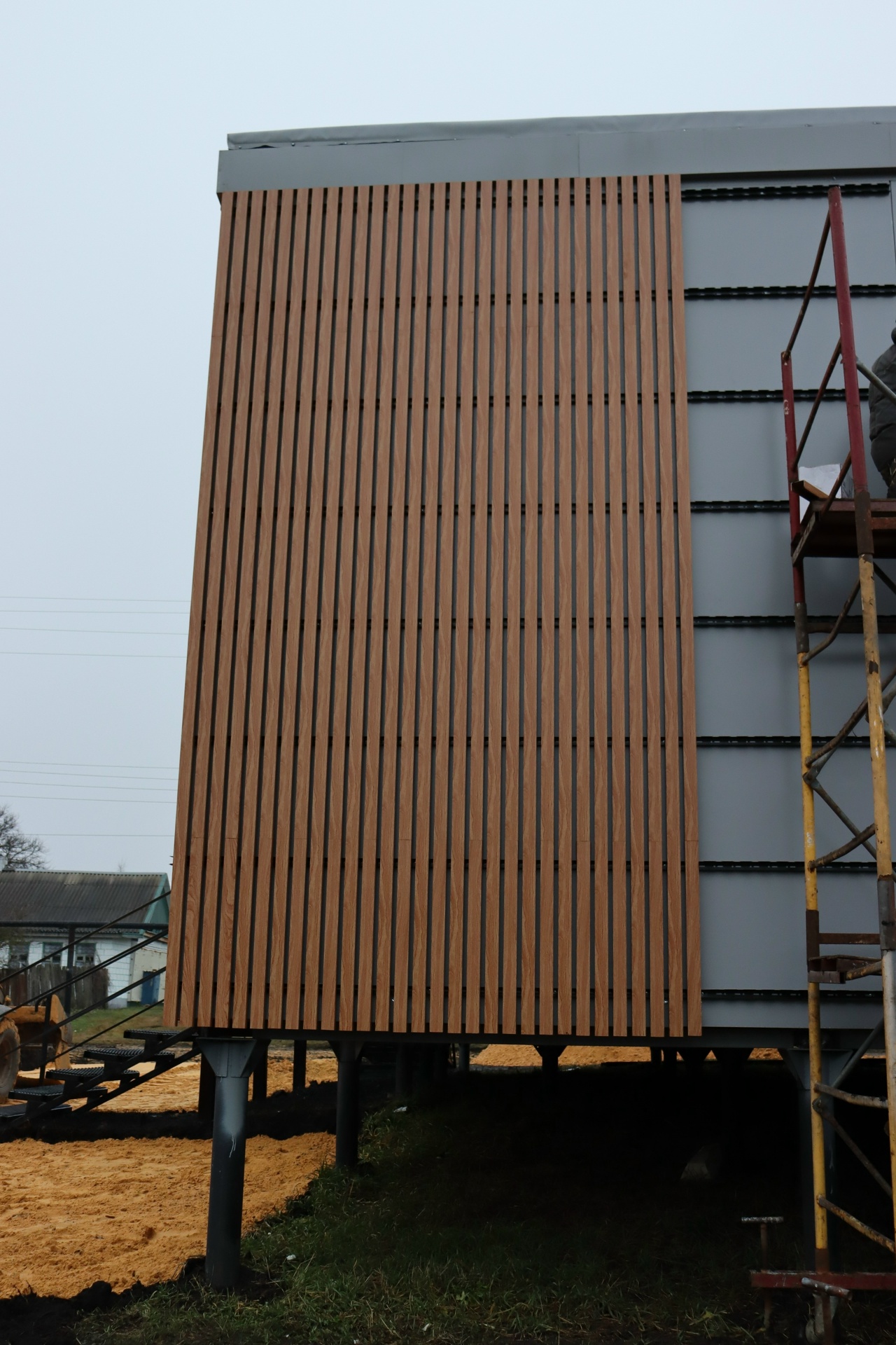 На объекте ведутся отделочные работы: подрядная организация приступила к облицовке фасада здания.