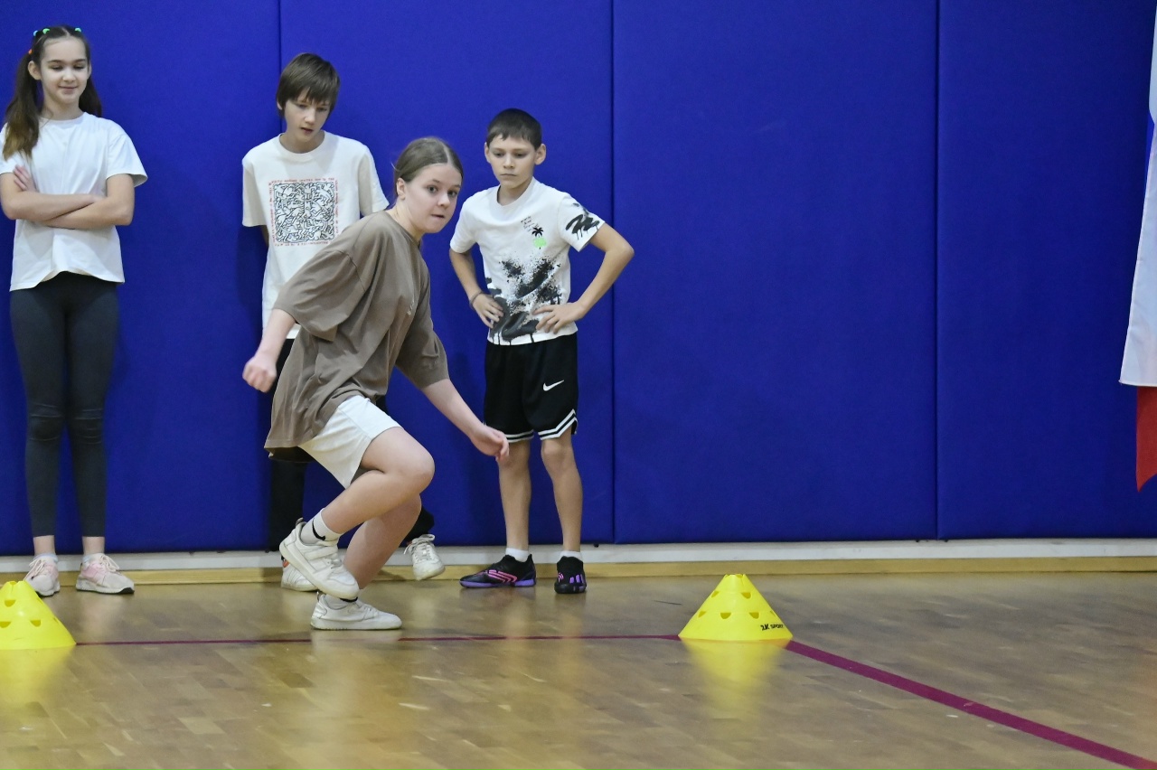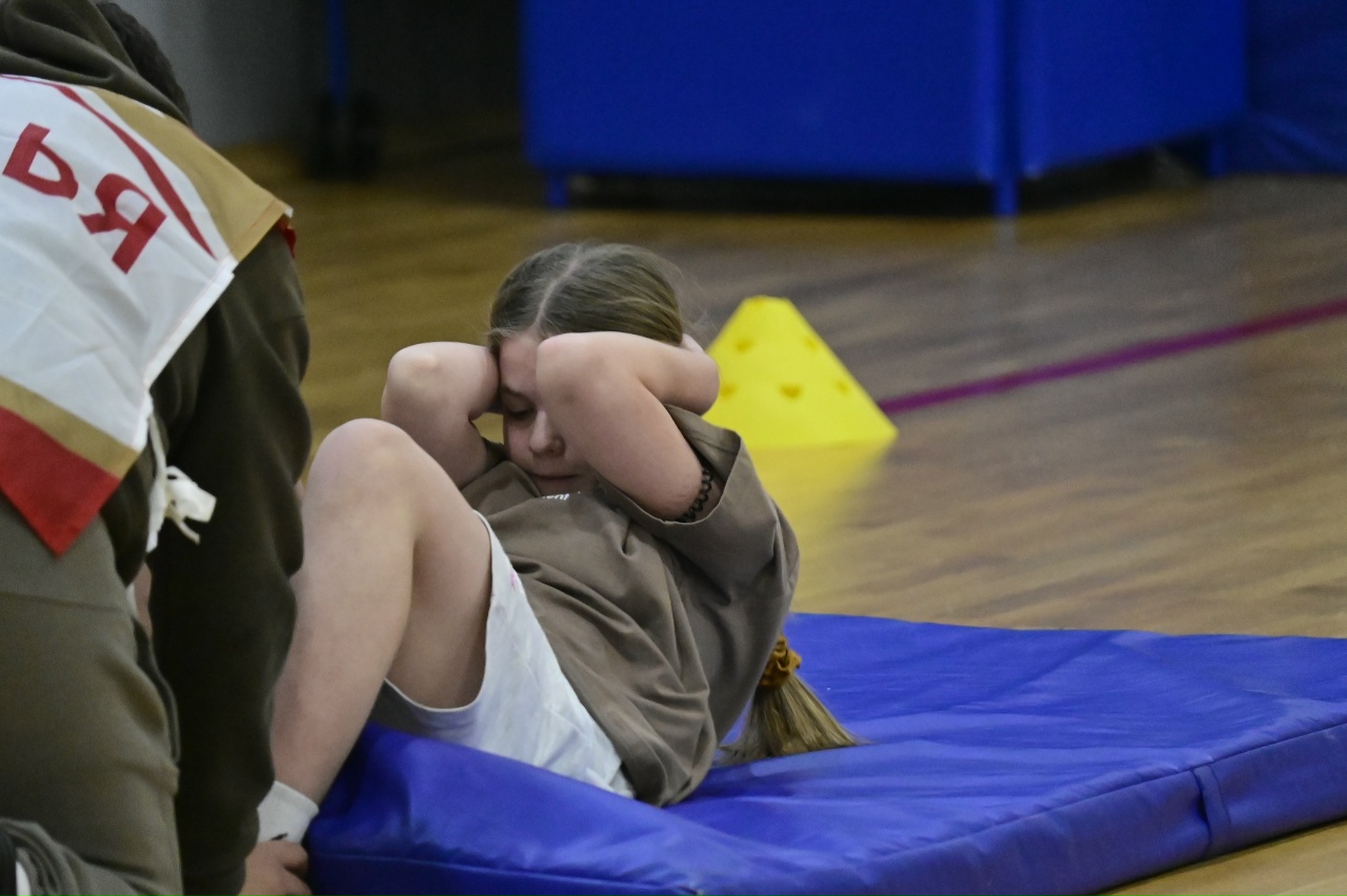 Ребятам и девушкам предстояло преодолеть трассу с упражнениями ГТО. Первый этап – челночный бег, второй – сгибание и разгибание рук в упоре лежа на полу (мальчики 10 раз, девочки 8 раз), прыжок в длину с места (150 см), поднимание туловища из положения лежа на спине – 15 раз, гладкий бег – передача эстафеты.