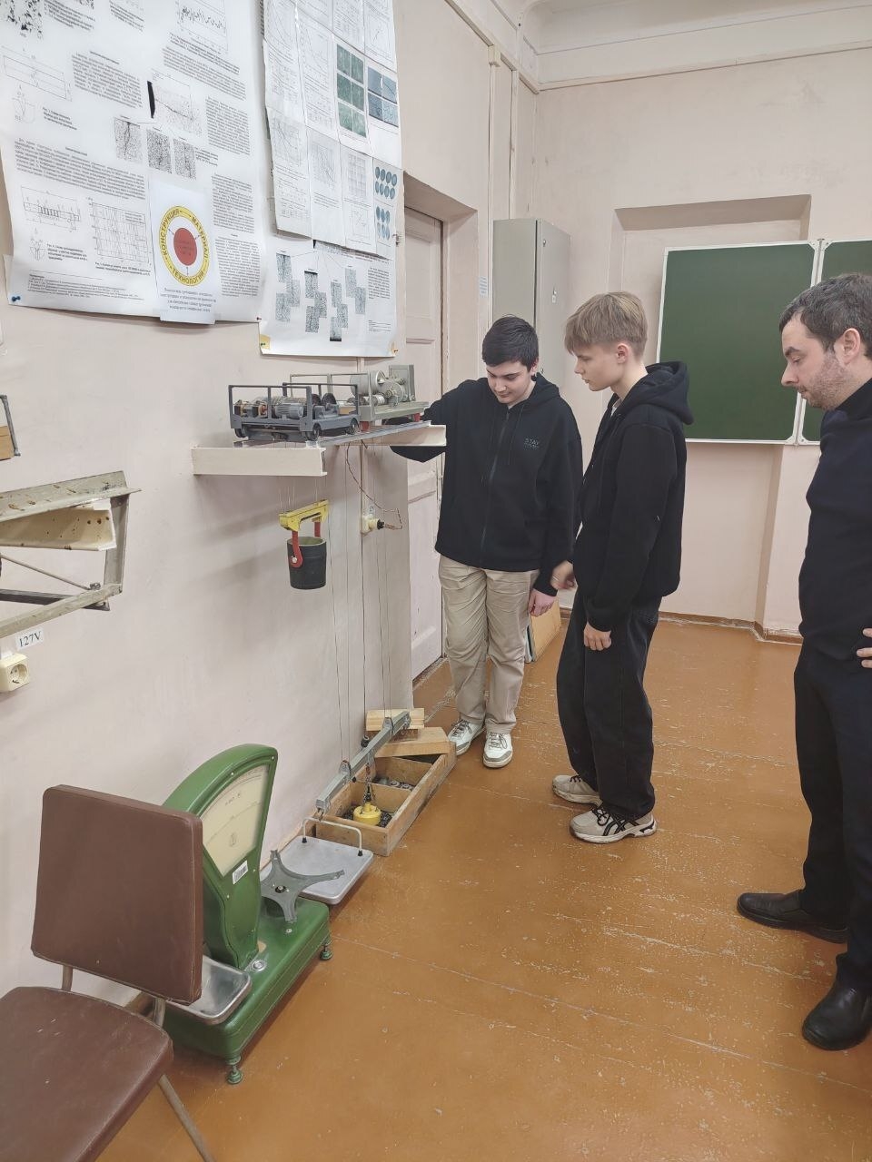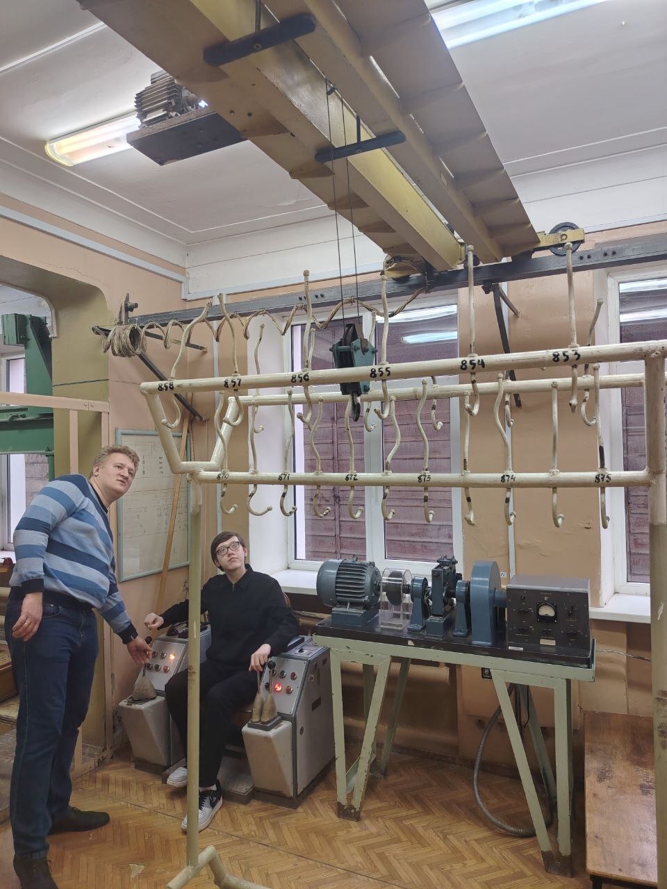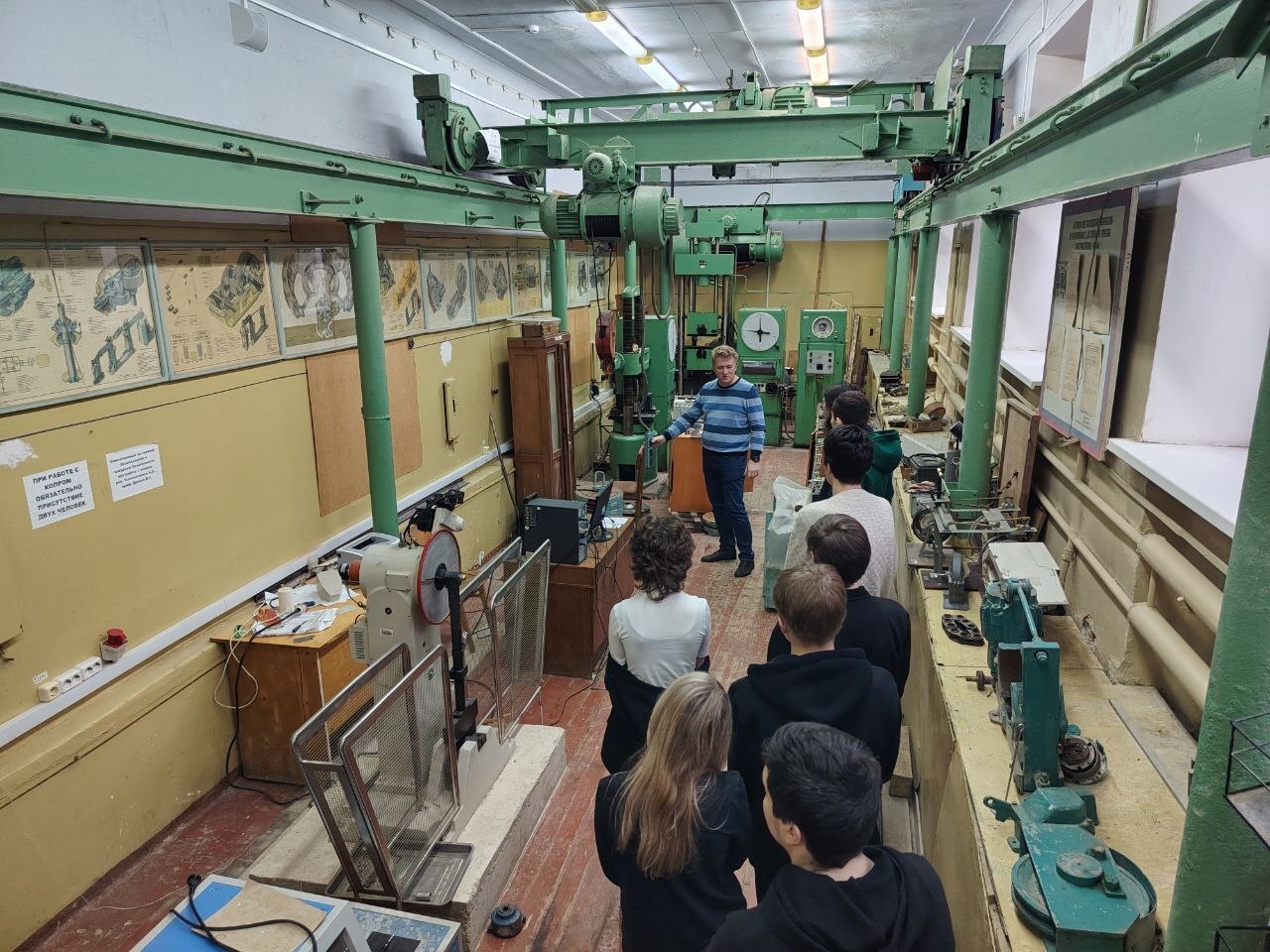 Далее — экскурсия по лабораториям кафедры ТТМиП. Здесь с ребятами работали Алексей Горынин и Александр Шафорост. Они познакомили школьников с подъёмно-транспортными машинами: кранами, конвейерами, транспортёрами. Ребята узнали, как устроены ленточные и цепные конвейеры, принципы работы грузоподъёмных кранов, де такие машины применяются — от стройплощадок до промышленных предприятий. И даже попробовали управлять моделями техники — настоящий иммерсивный опыт!
