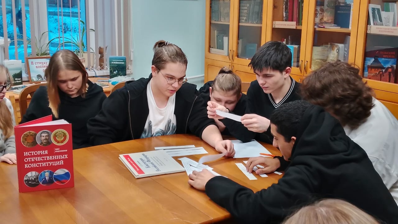 В канун Дня Конституции Кимовская центральная модельная библиотека стала площадкой для проведения интеллектуального брейн-ринга, на который были приглашены старшеклассники средней школы №2. Вначале игры ребята разделились на две команды – «Лига справедливости» и «Лига правосудия» и выбрали капитанов.