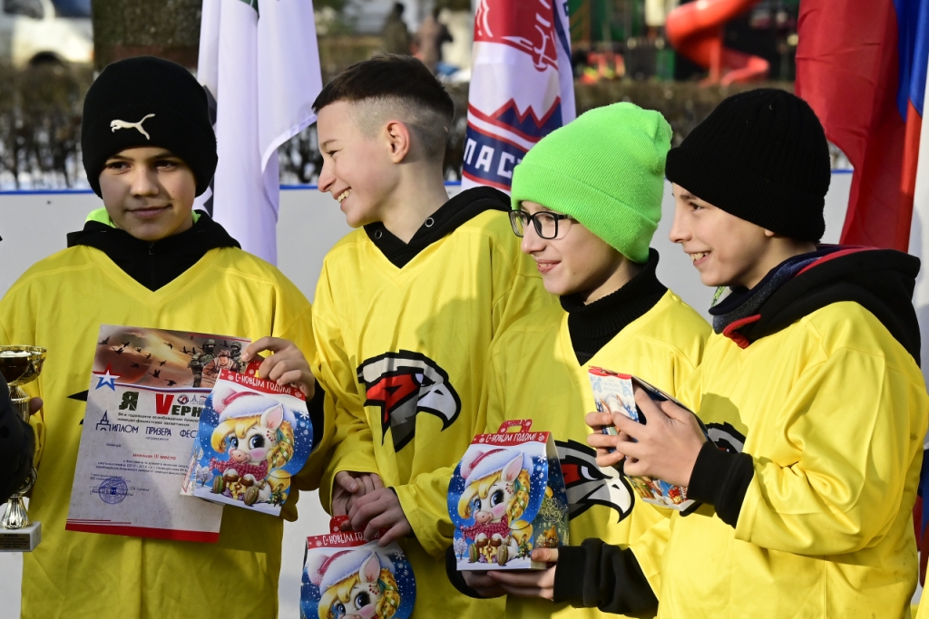 Награждение участников, победителей и призеров фестиваля провела заместитель главы районной администрации Жанна Евсеева. Ребята были награждены кубками, дипломами и каждый сладким новогодним подарком, о которых позаботились Федерация хоккея Тульской области и компания «Полипласт».